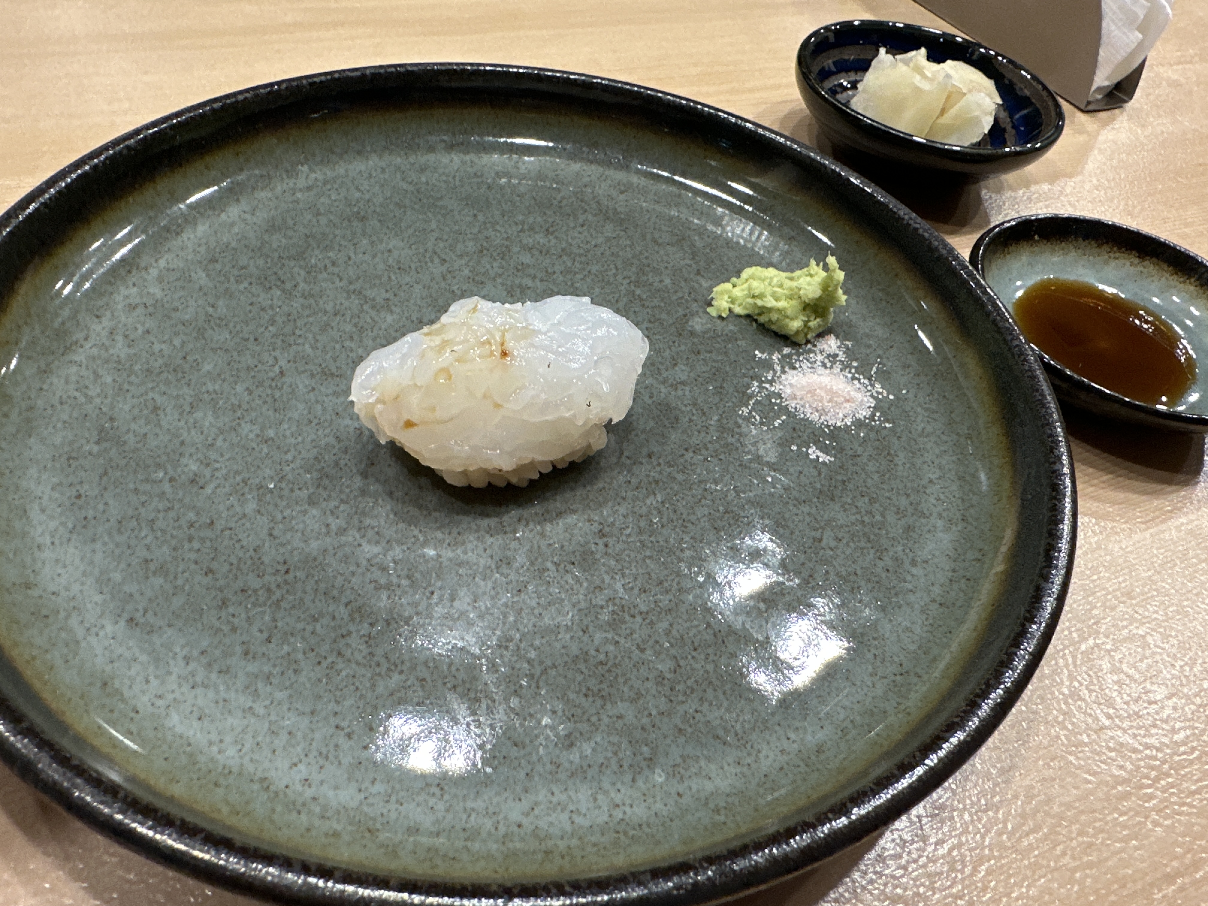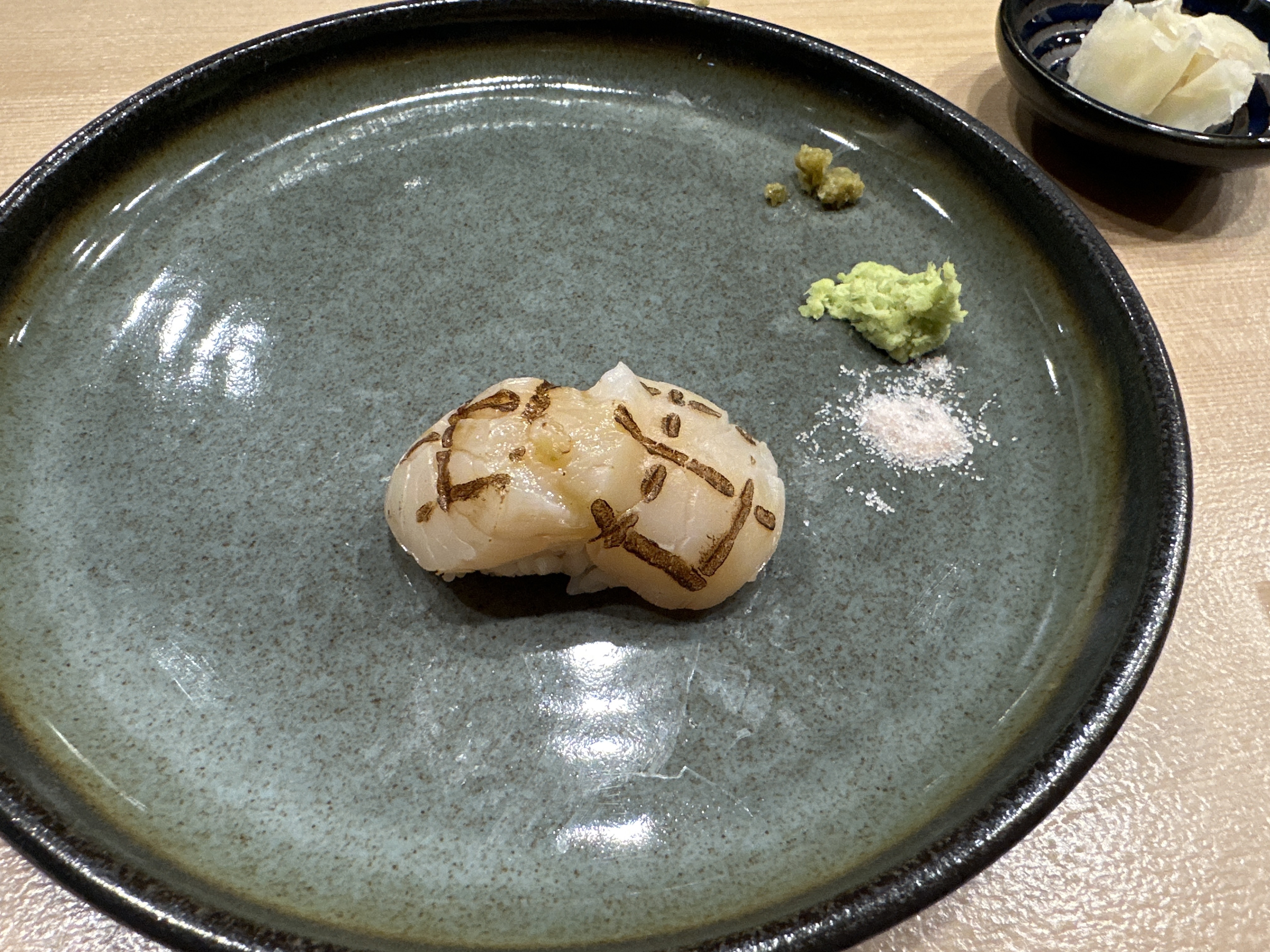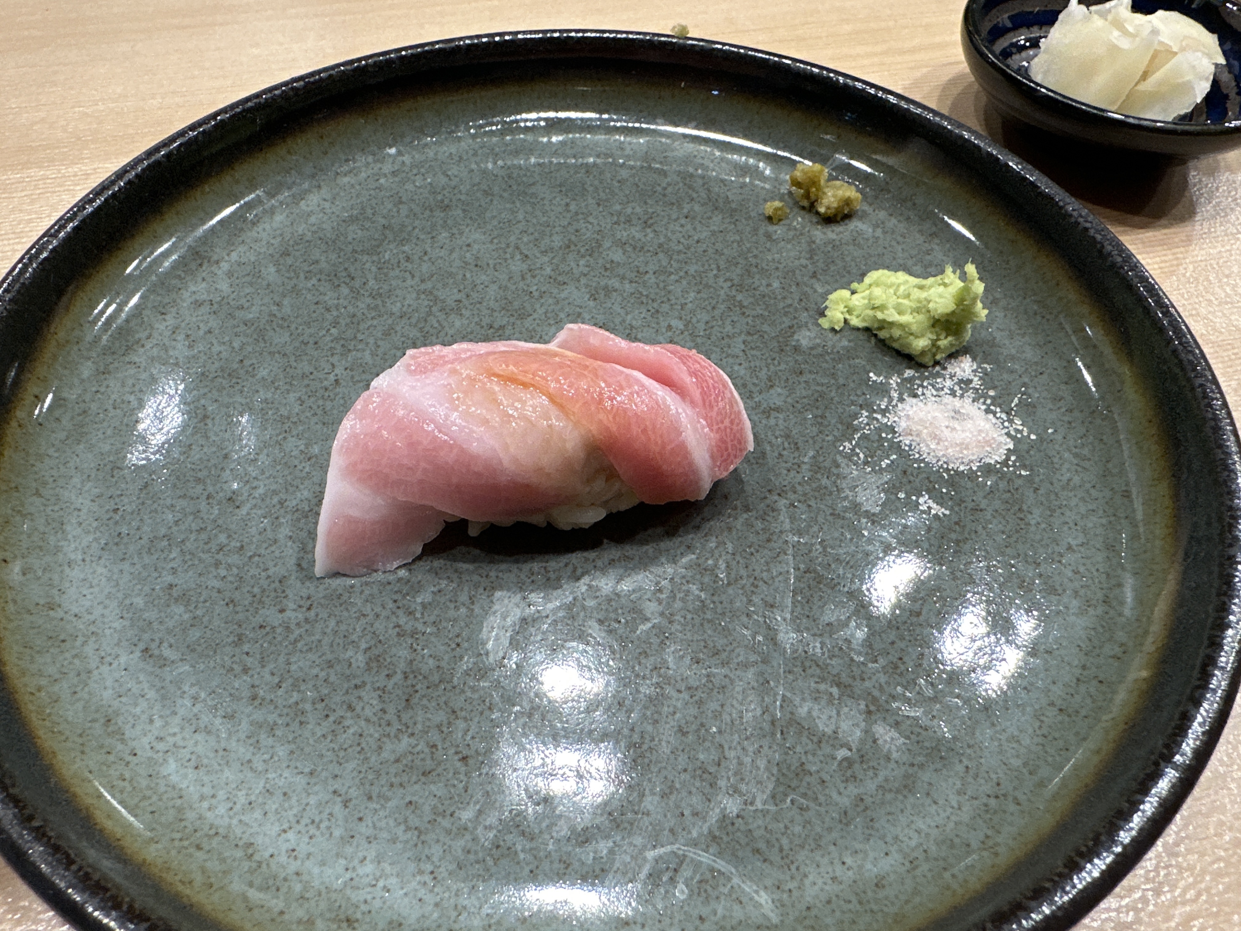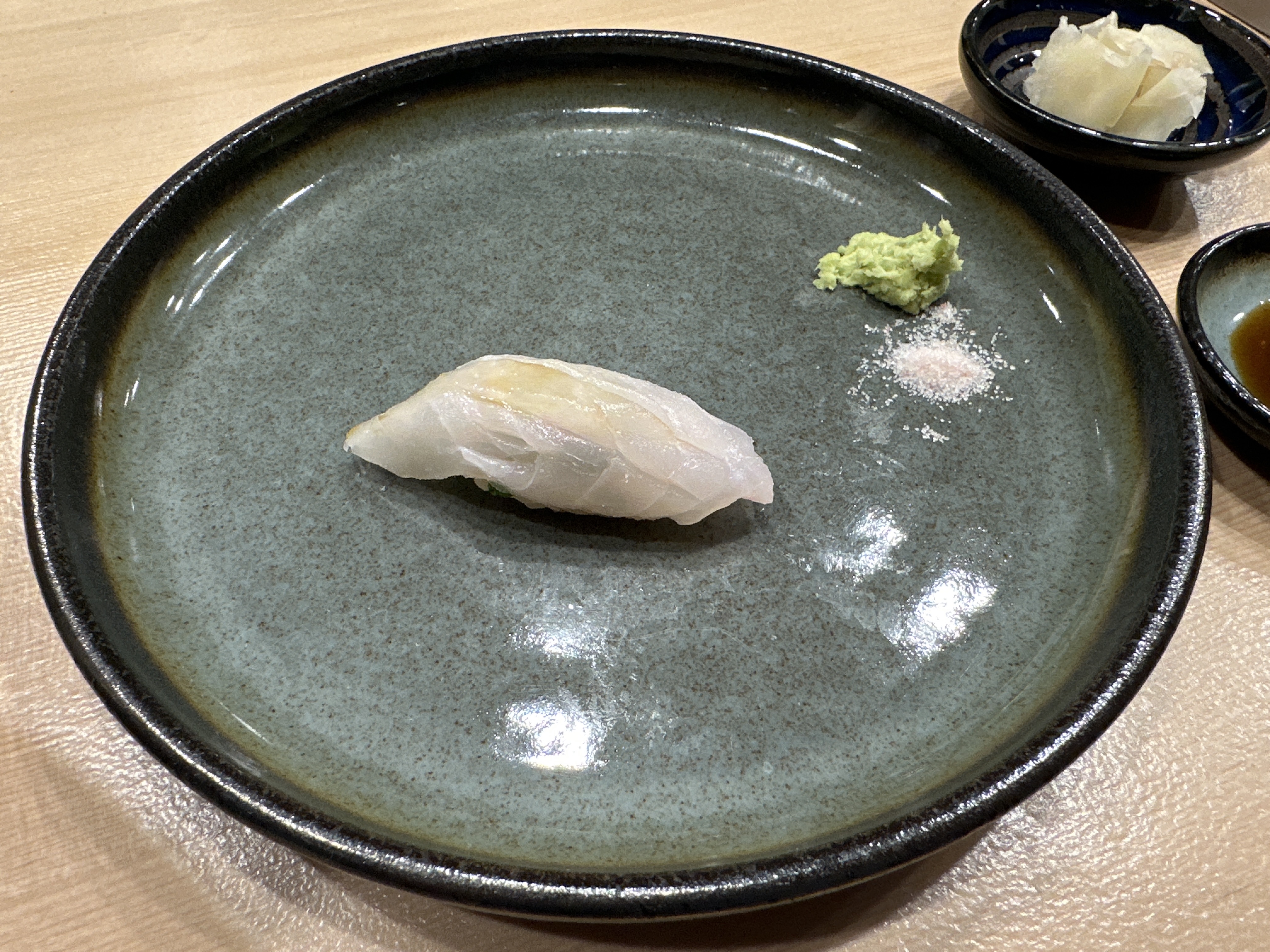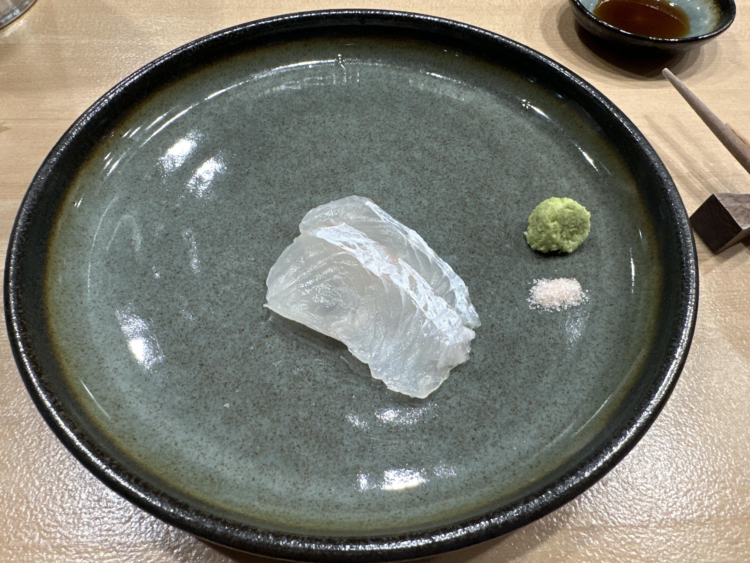 오마카세 단골생선 줄무늬전갱이 ㅎㅎㅎ 전갱이보다 식감이 살아있어서 좋아하는 스시입니다.