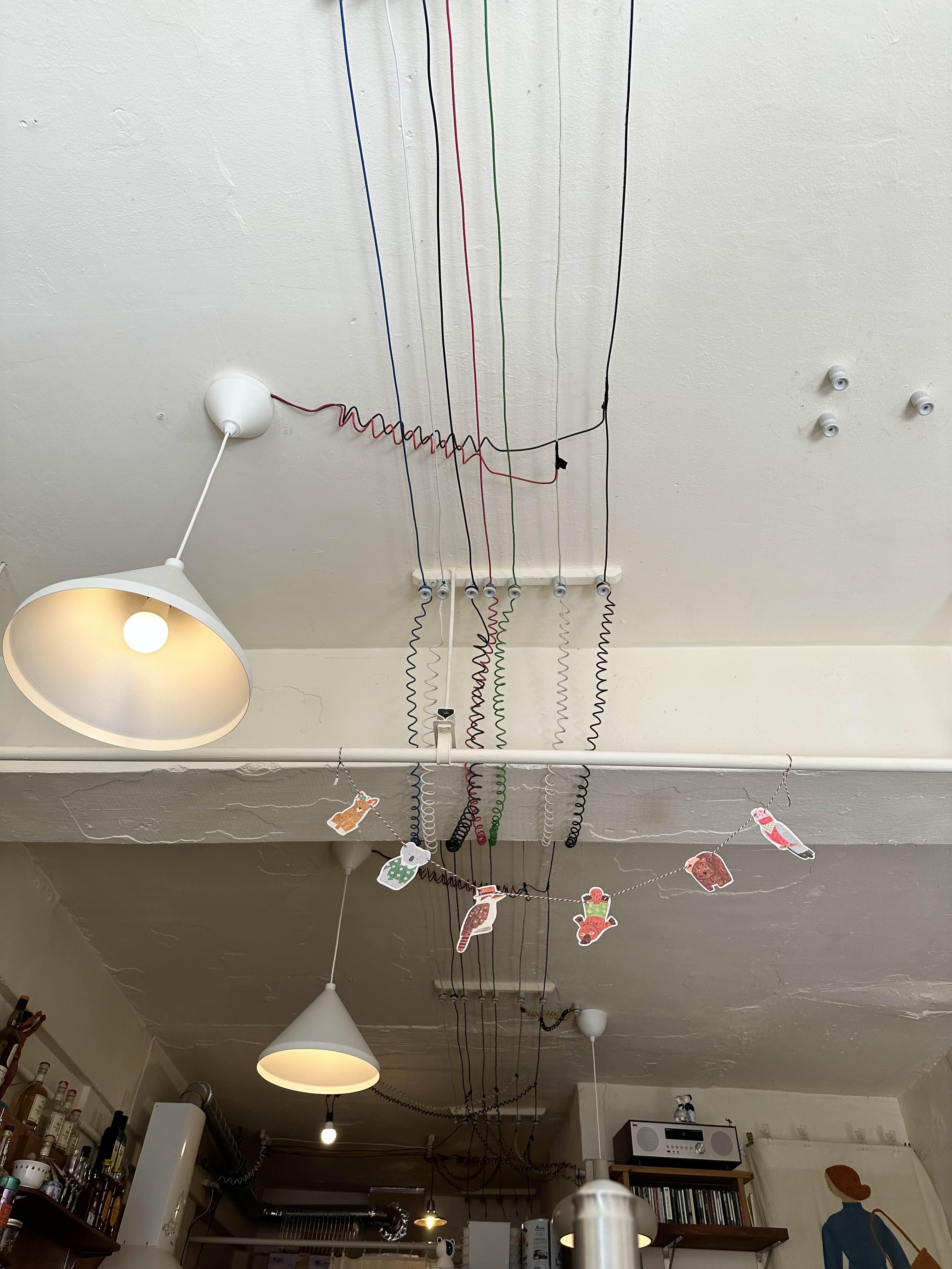 천장에 귀여운 전선정리. 데코가 아니라 진짜 전선인거 같아요.