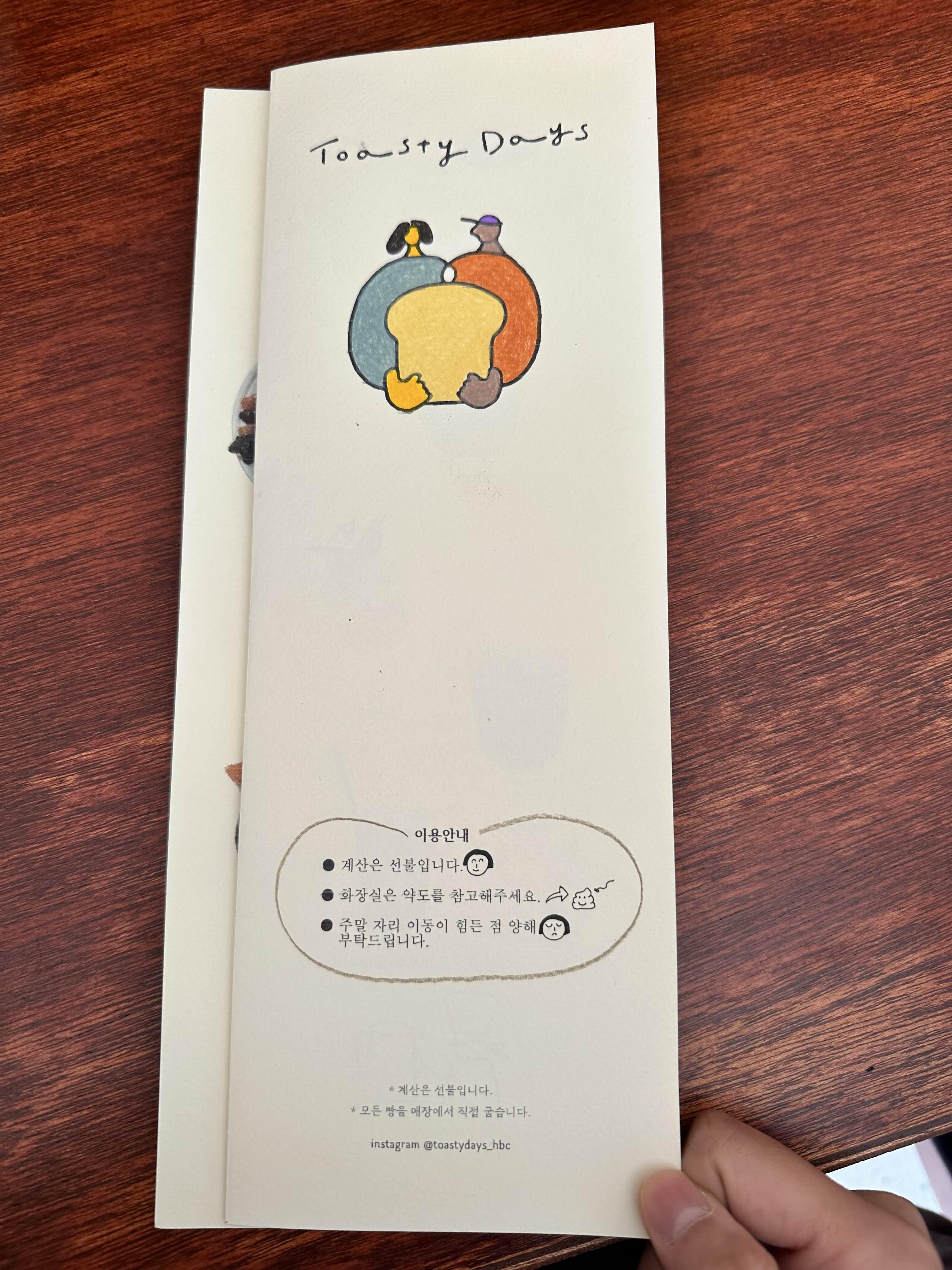 토스티 데이즈 메뉴판