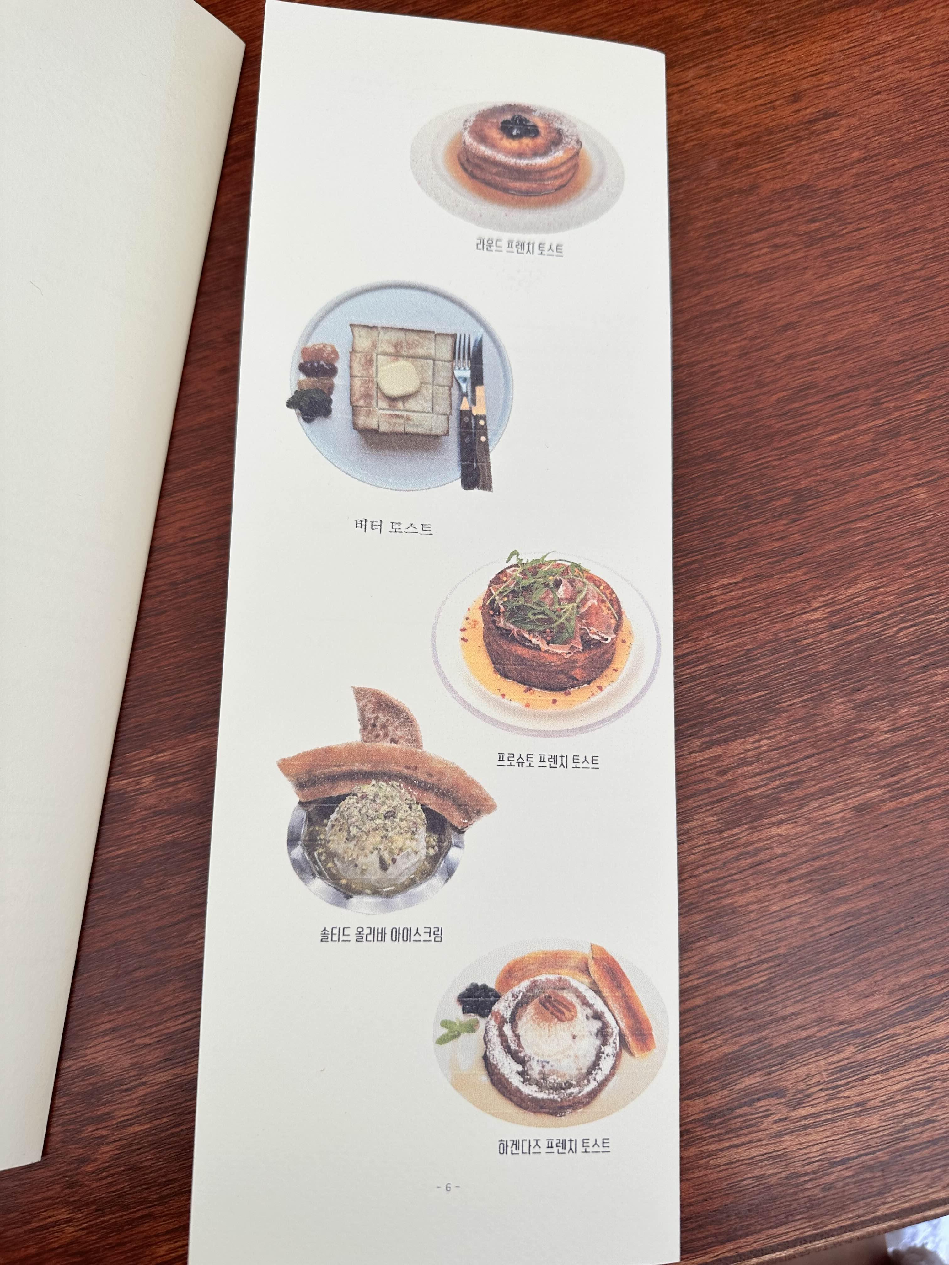 다 맛있어보였지만 가장 메인메뉴인 라운드 프렌치 토스트로 주문