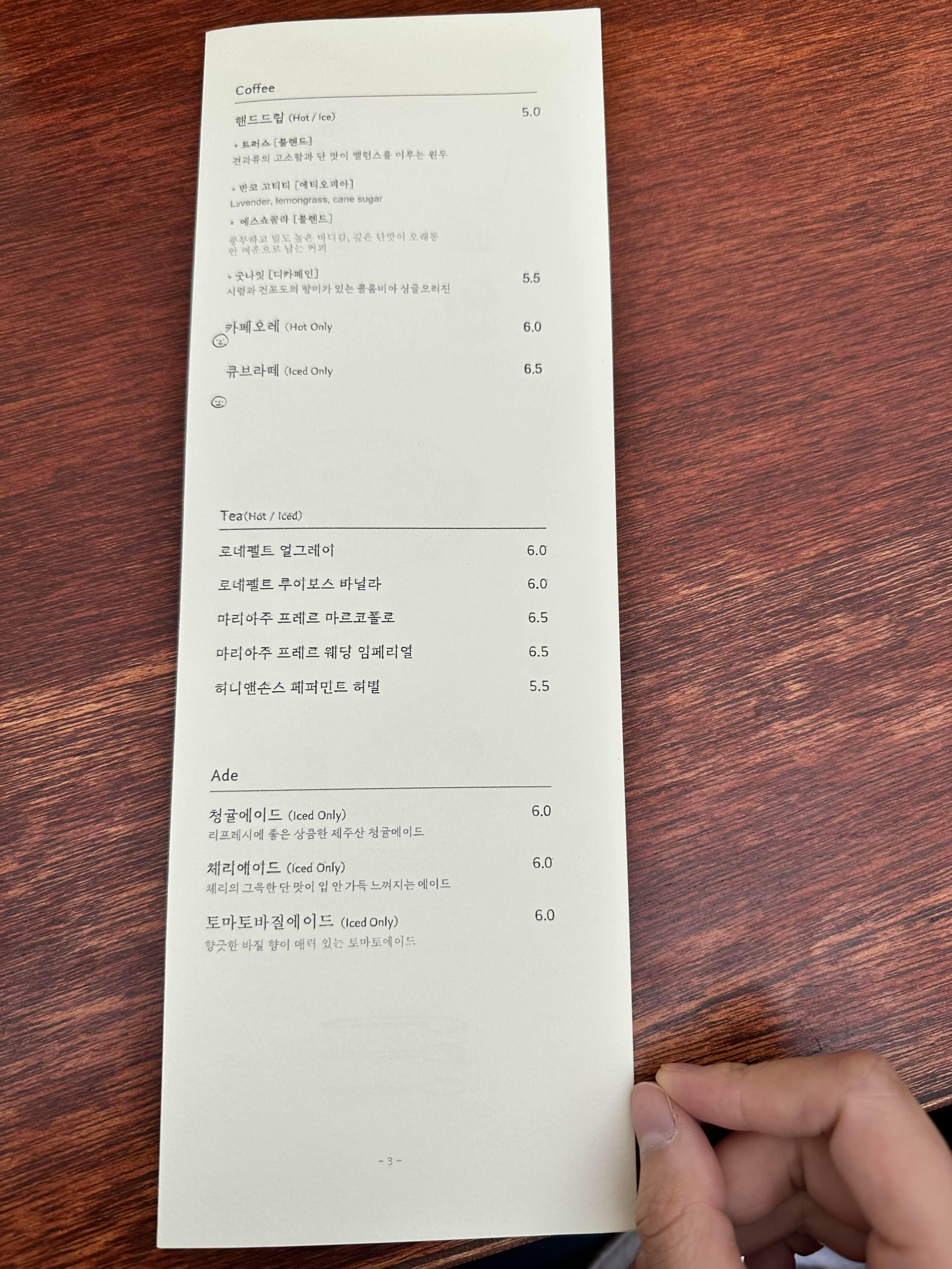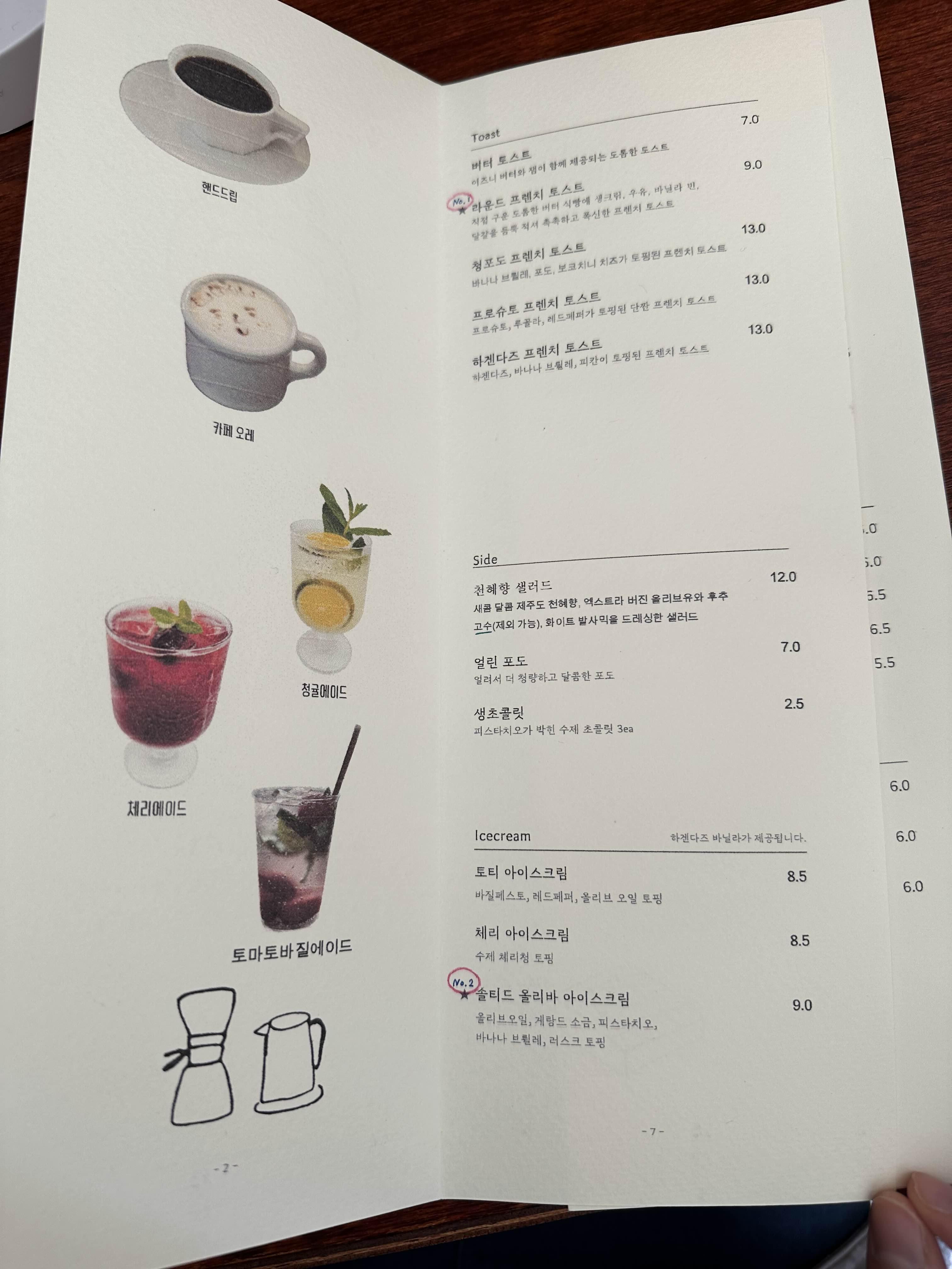 자리에 앉으면 건네주시는 귀여운 종이메뉴판.