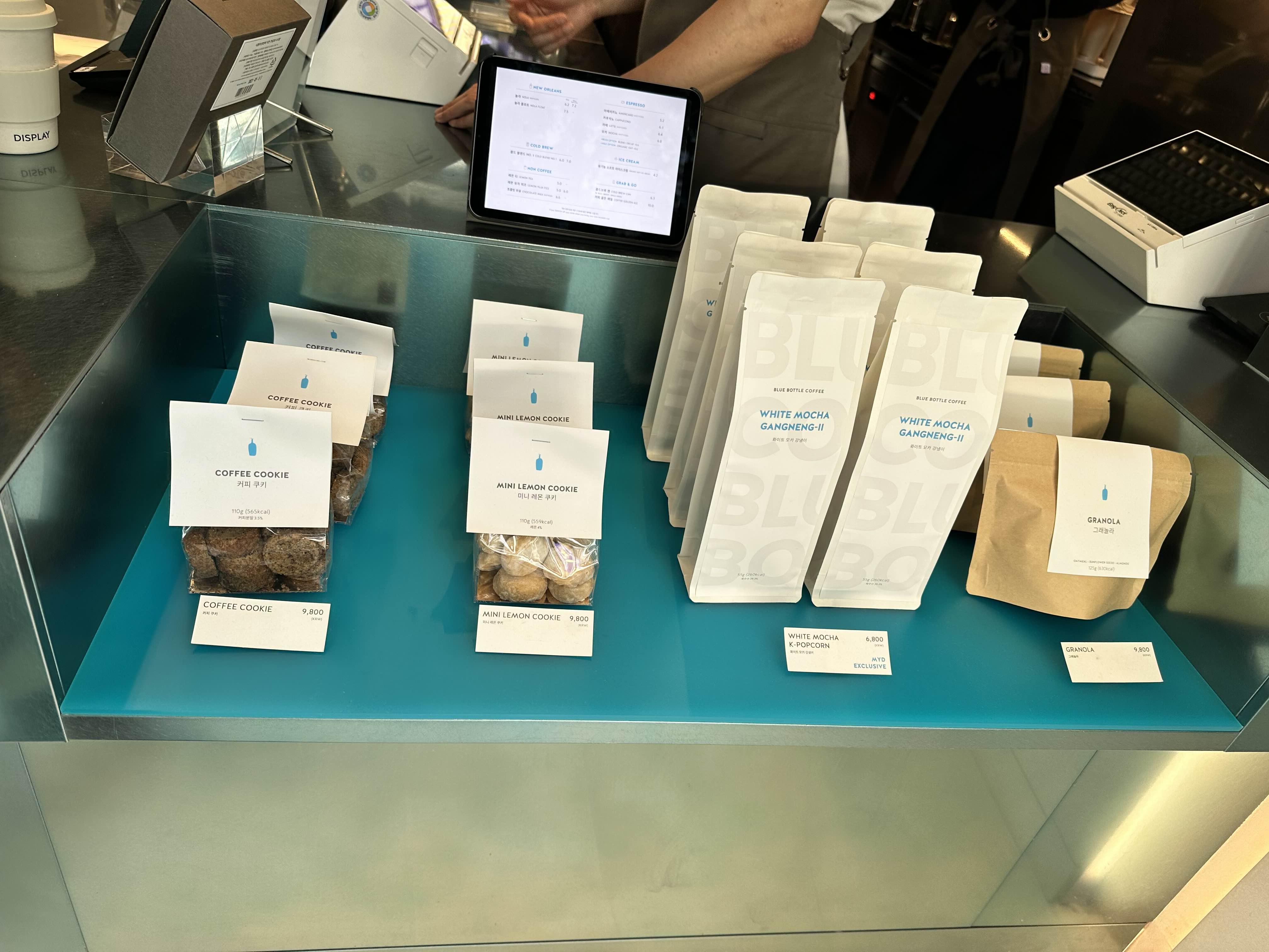 그래도 깨알같이 원두, 과자, 굿즈를 파네요