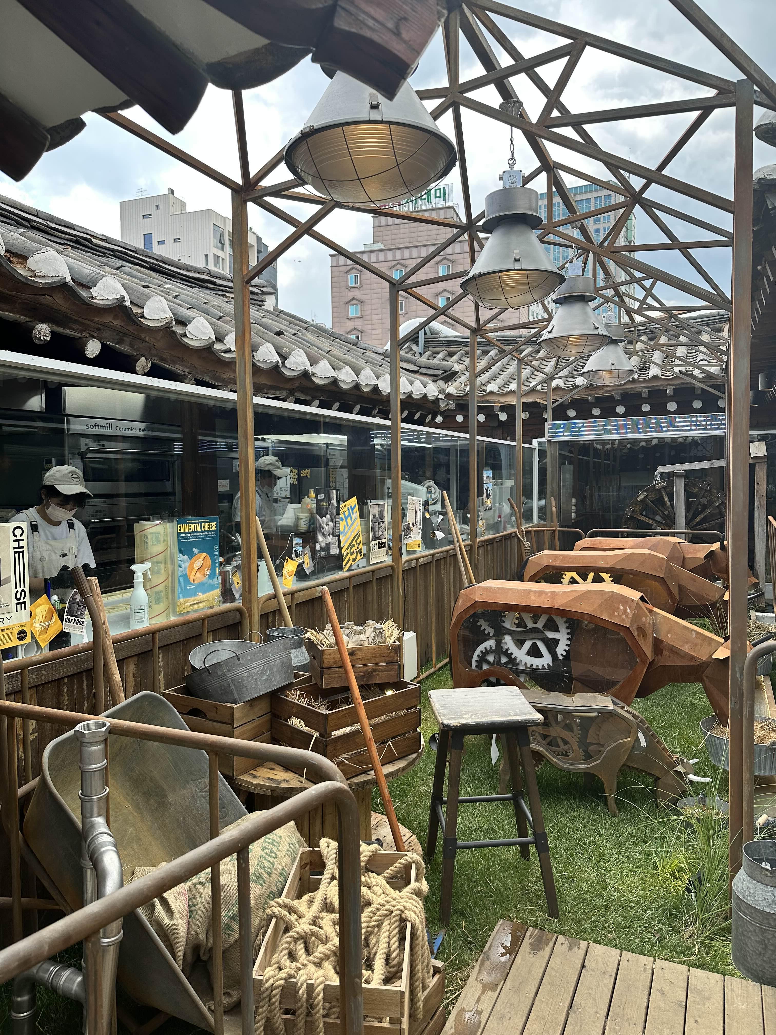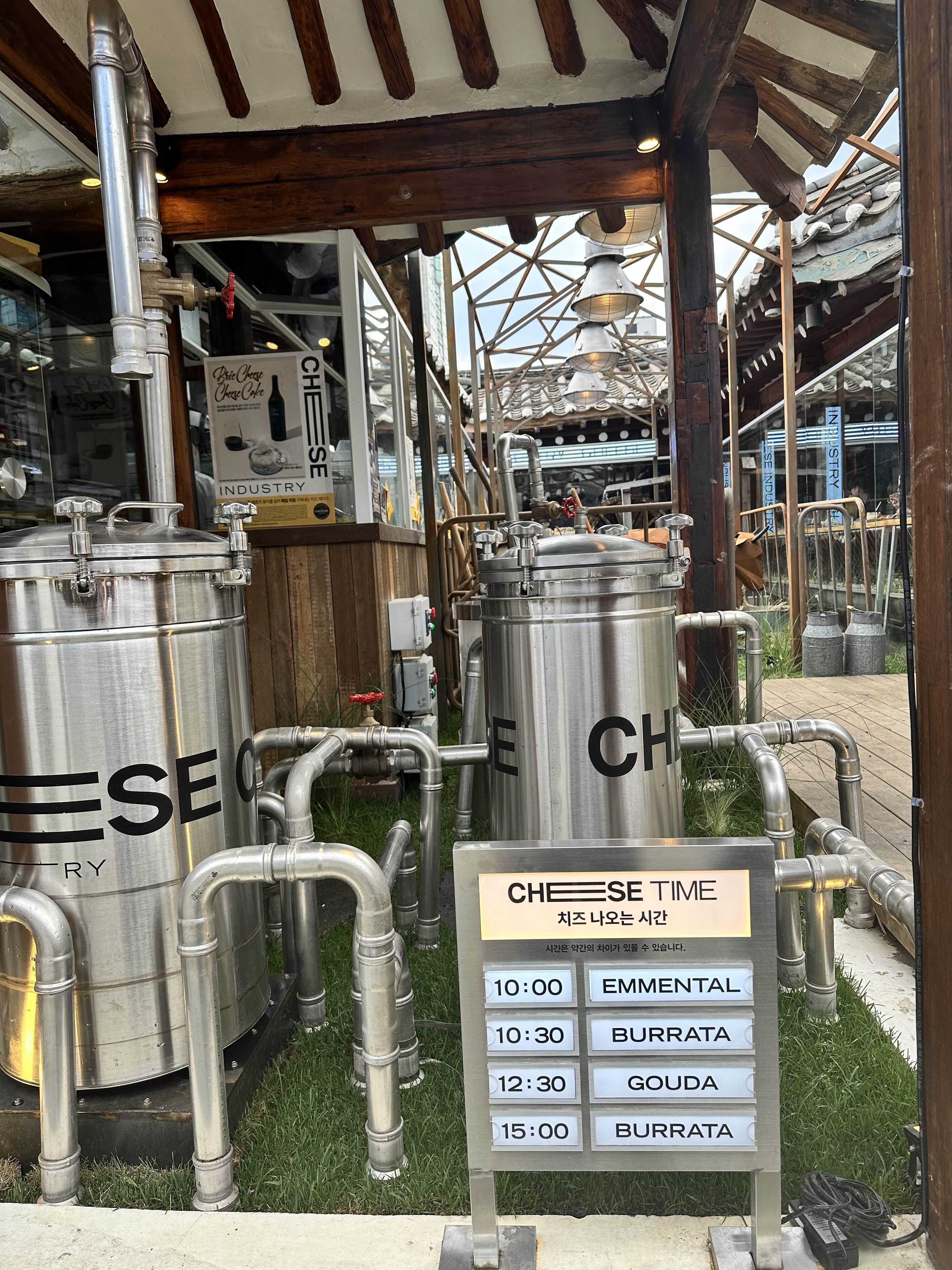 바깥에 이렇게 소 모양 조형물도 있고 한쪽에서는 치즈를 열심히 만들고 계세요