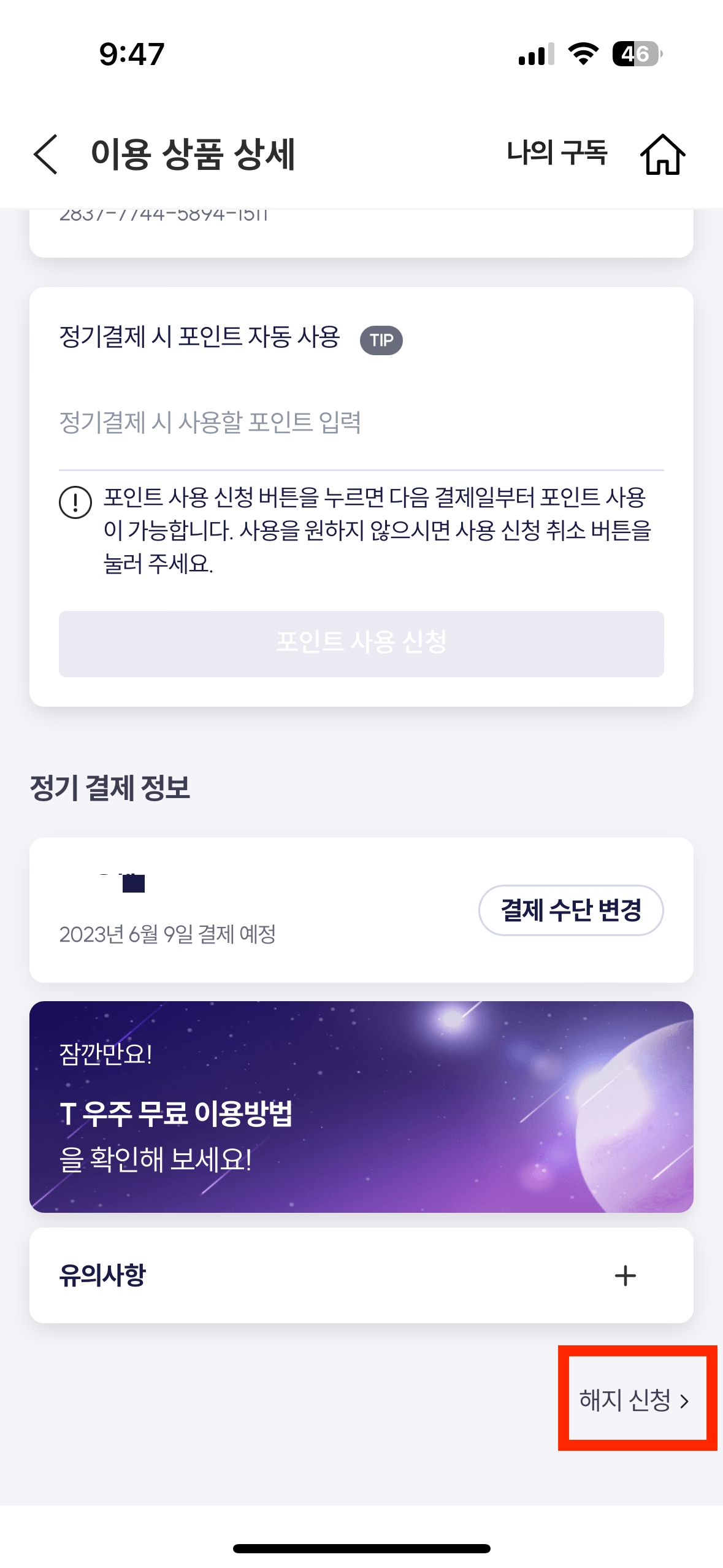 그래도 한가지 다행인건 T우주는 결제일 당일에는 바로 해지하면 환불을 해주는 것 같습니다.