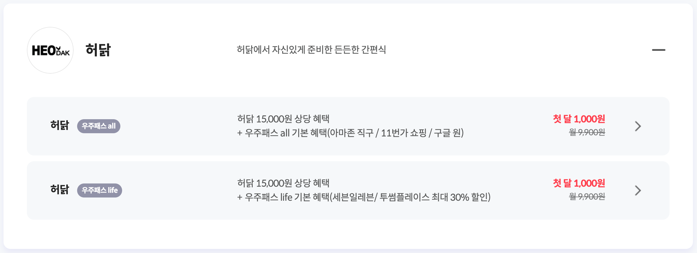 최근에는 추가혜택 없이 아마존과 11번가 쿠폰만 제공하는 우주패스 slim도 출시되었습니다.