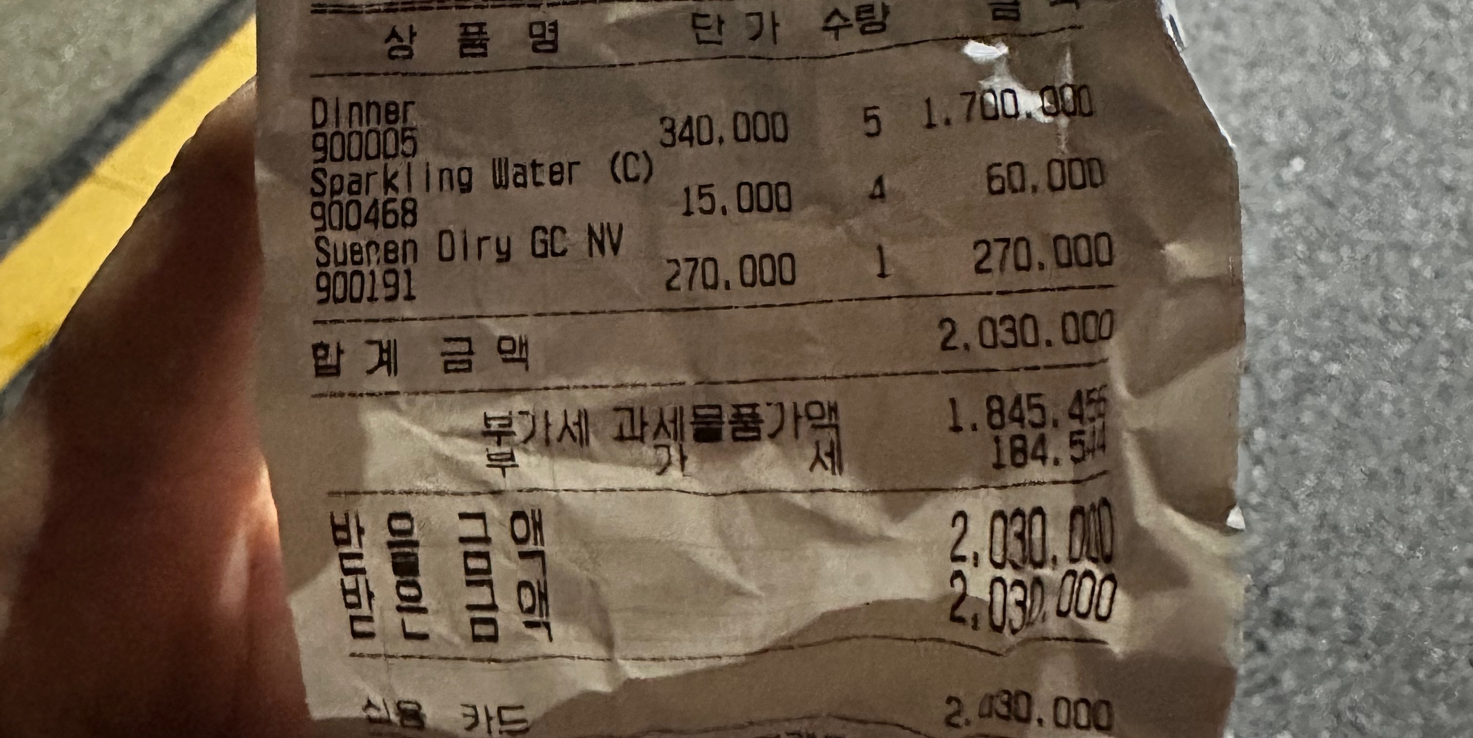 물이 너무 맛있어서 계속 따라달라고 했는데 물값만 6만원 나왔네요 ㅋㅋㅋ ;;;