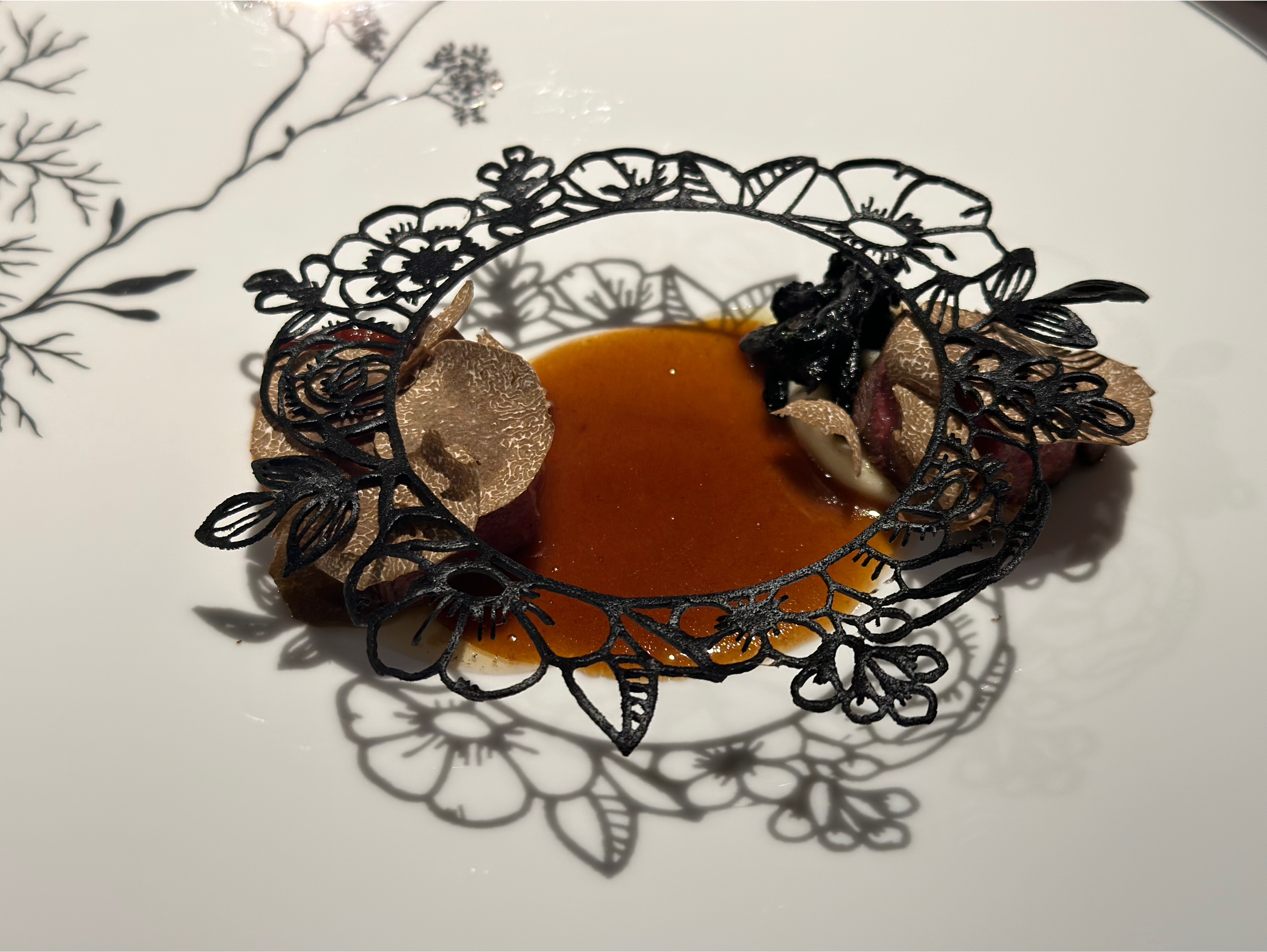 블랙트러플, 갈릭젤리, 페스츄리 스틱이 올라가 있는데