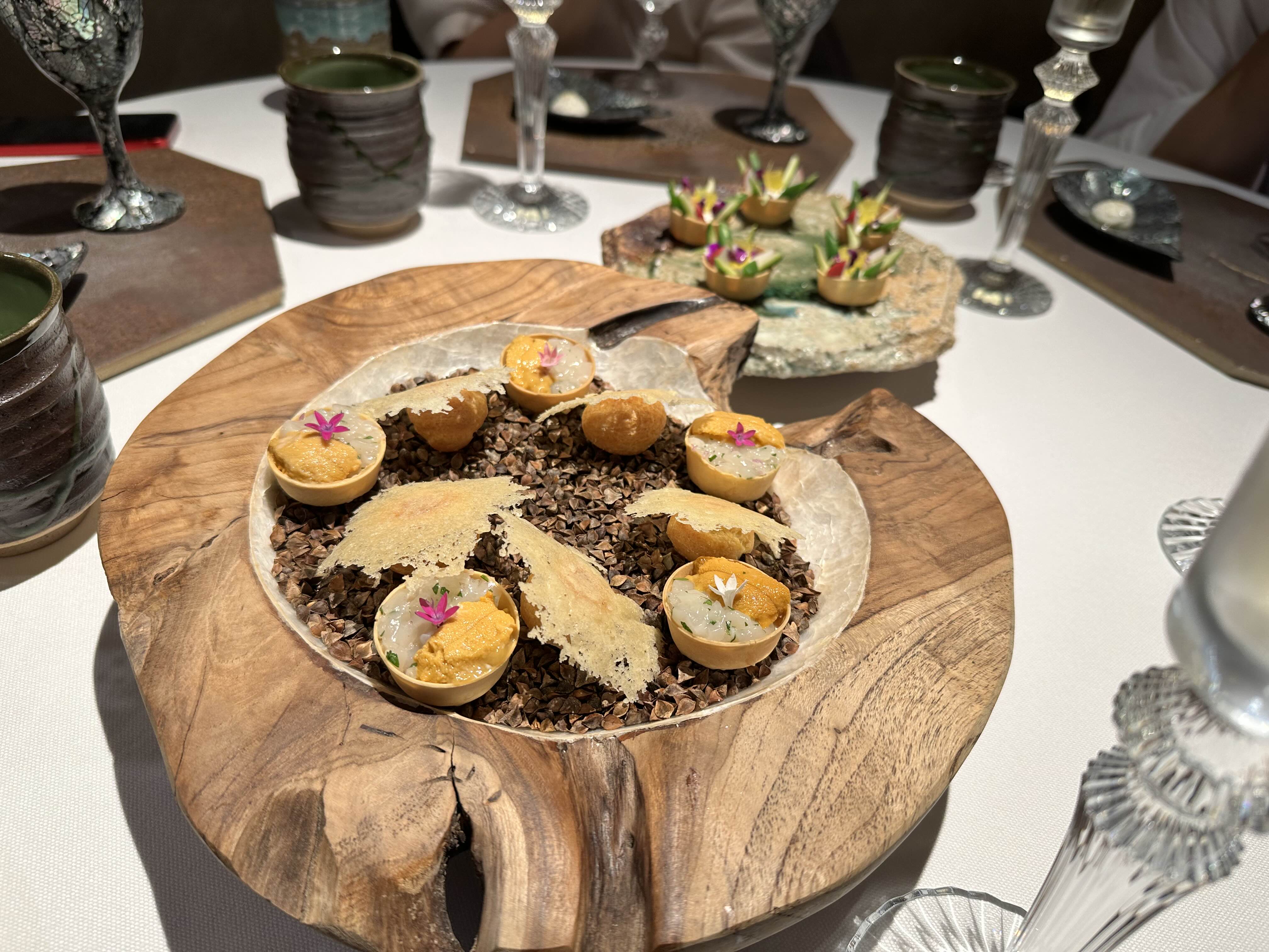 뒤에 보이는 성게알에 담겨있는게 성게알 스프였는데 너무너무 맛있었습니다..