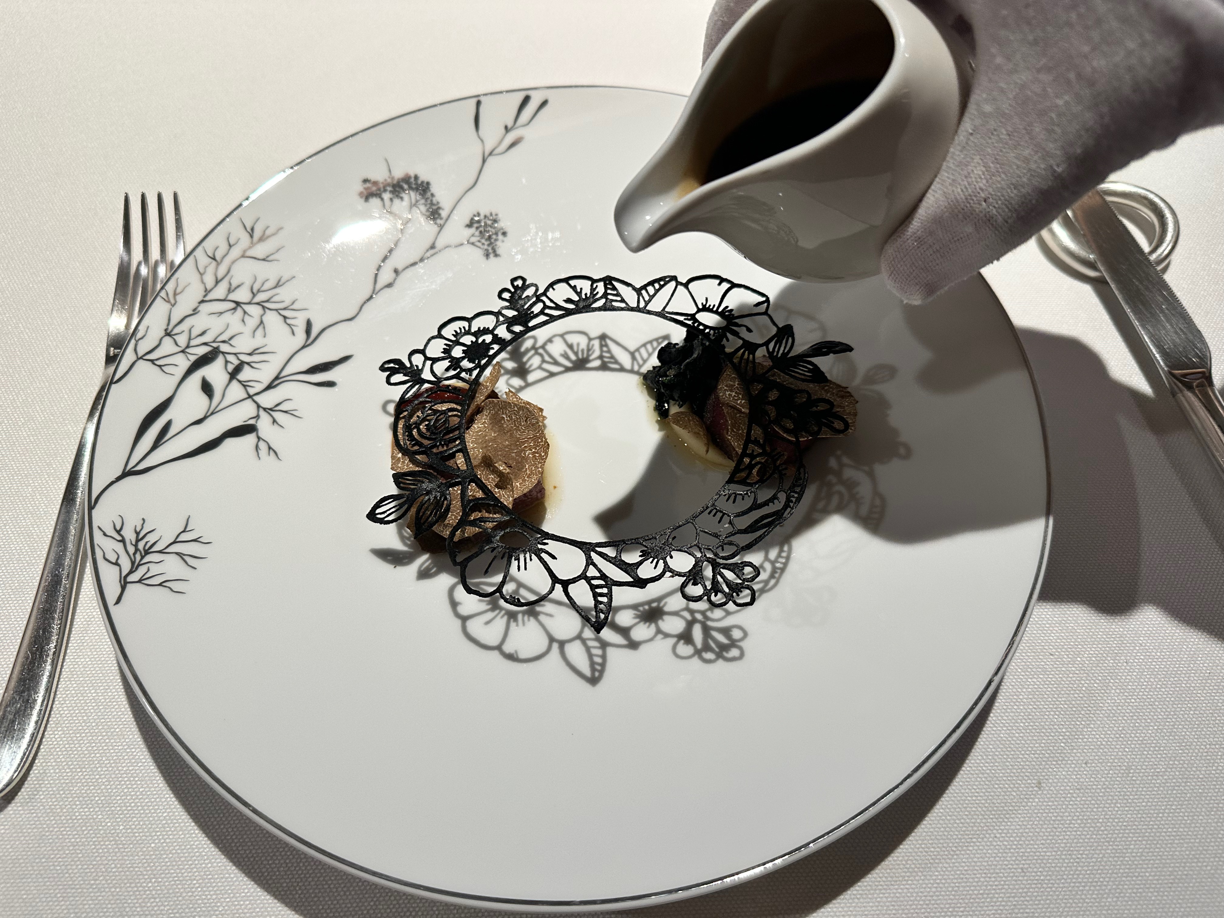 까맣게 보이는게 페스츄리스틱인데 페스츄리 스틱그림자와 접시 그림이 어울어진 플레이팅이 예술이었습니다..
