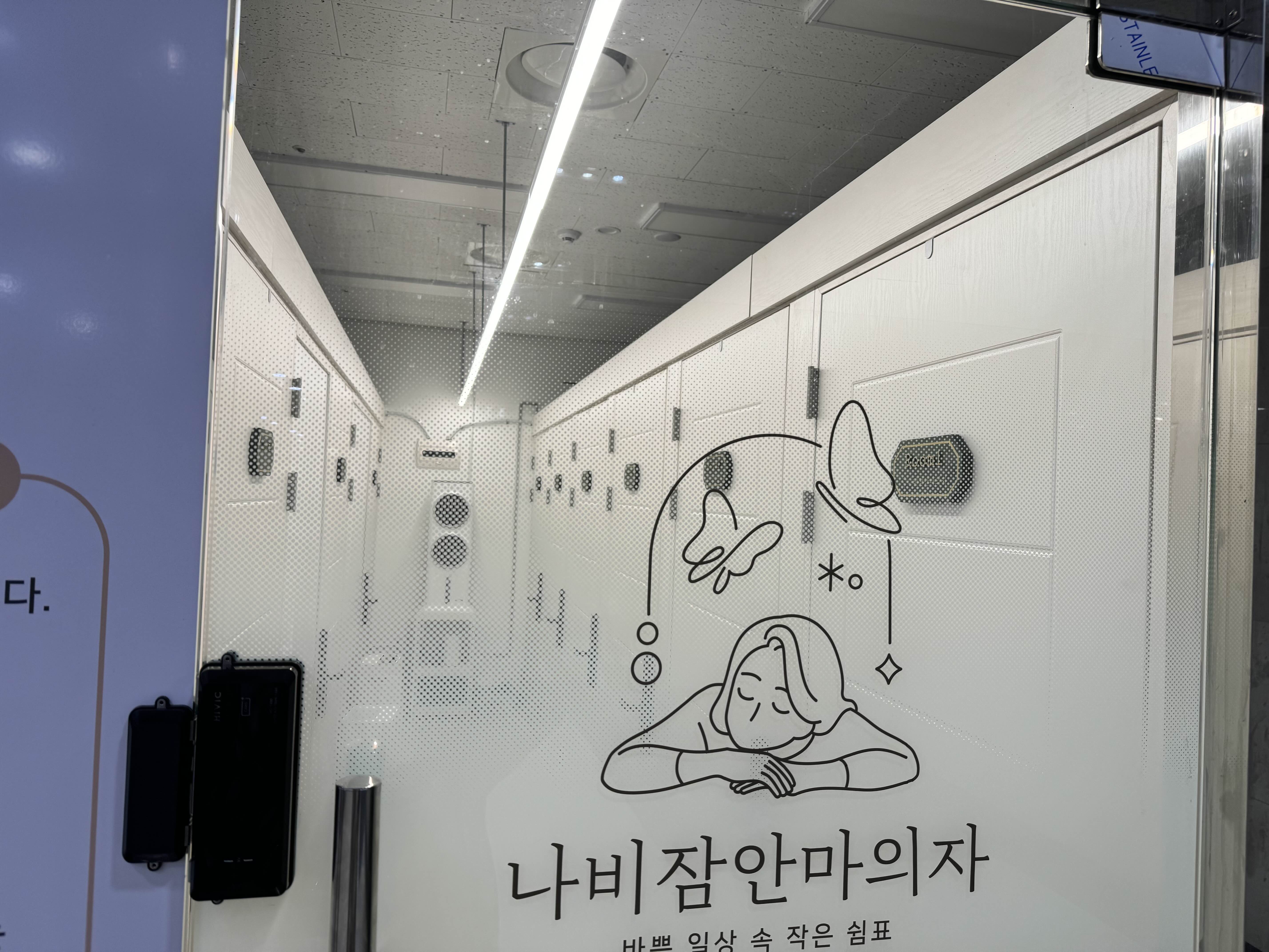 안마의자마다 개별 방으로 되어있고, 예약한 사람만 문을 열 수 있어요
