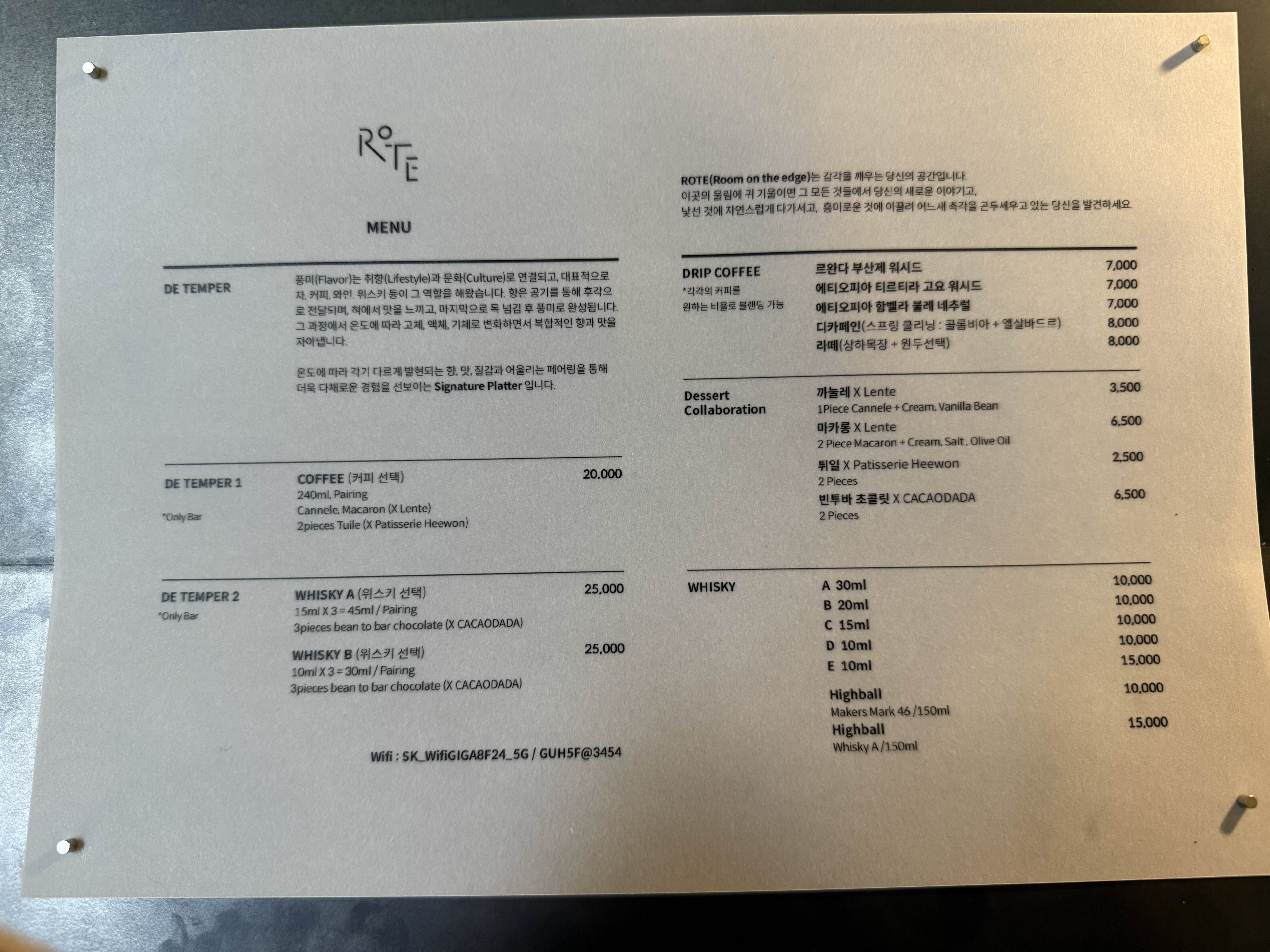 ROTE 커피/위스키 메뉴
