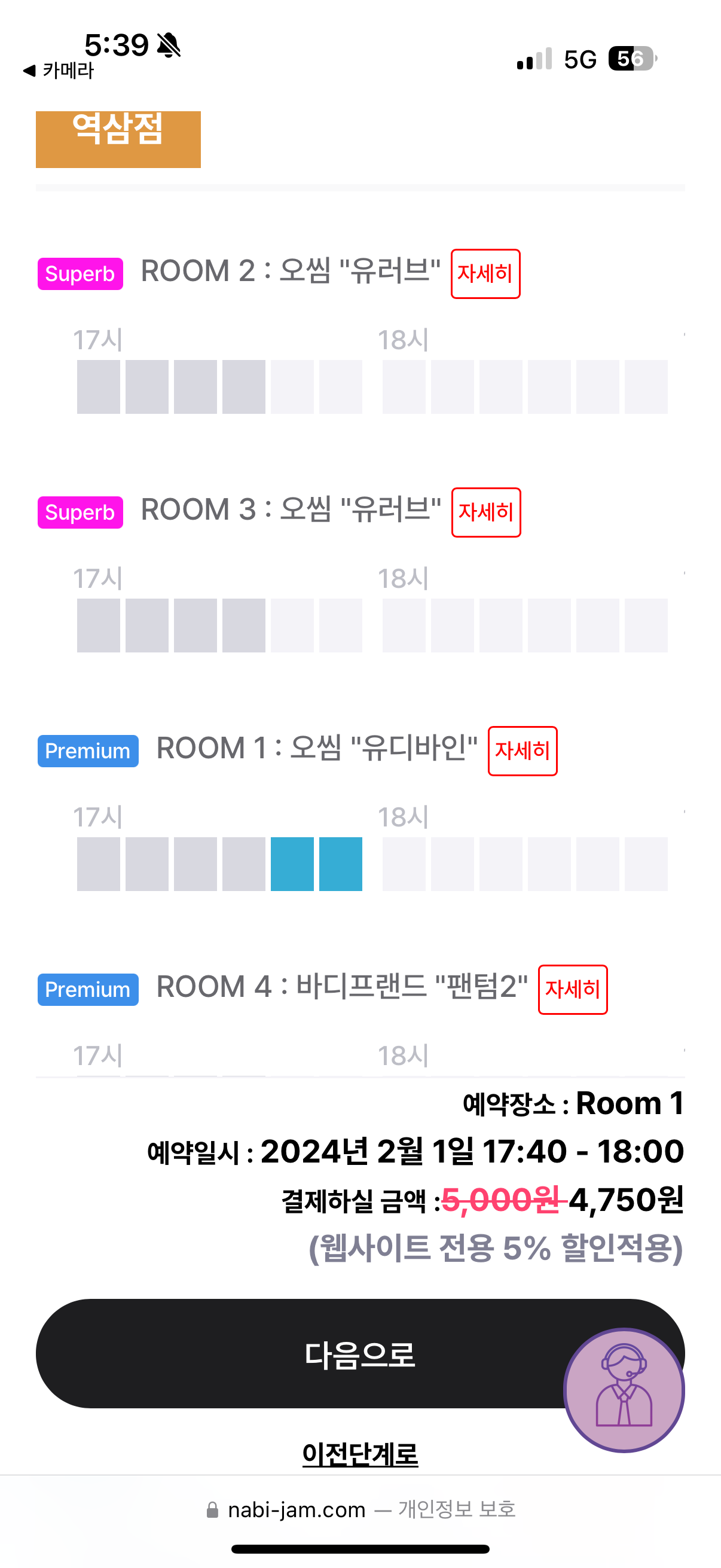 먼저 웹사이트에서 예약을 진행해봅니다.
