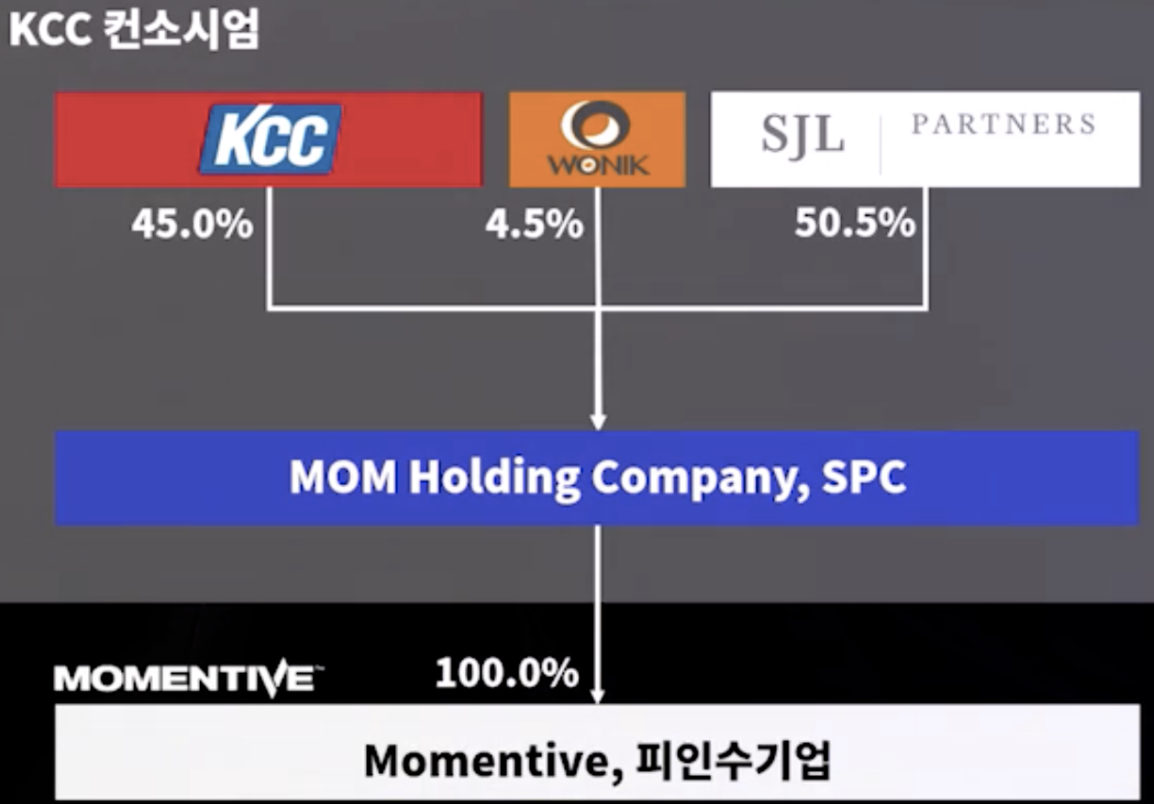 이에 KCC와 Wonik이 Momentive를 공동인수하였을 뿐 아니라 사업을 분리하여 나눠갖는것 까지 성공하였다.