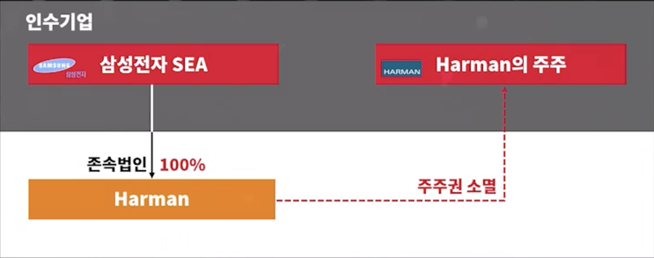 Harman의 기존 주주들의 주주권은 소멸되며, 삼성전자 SEA로 부터 합병 대가를 지급반는다.