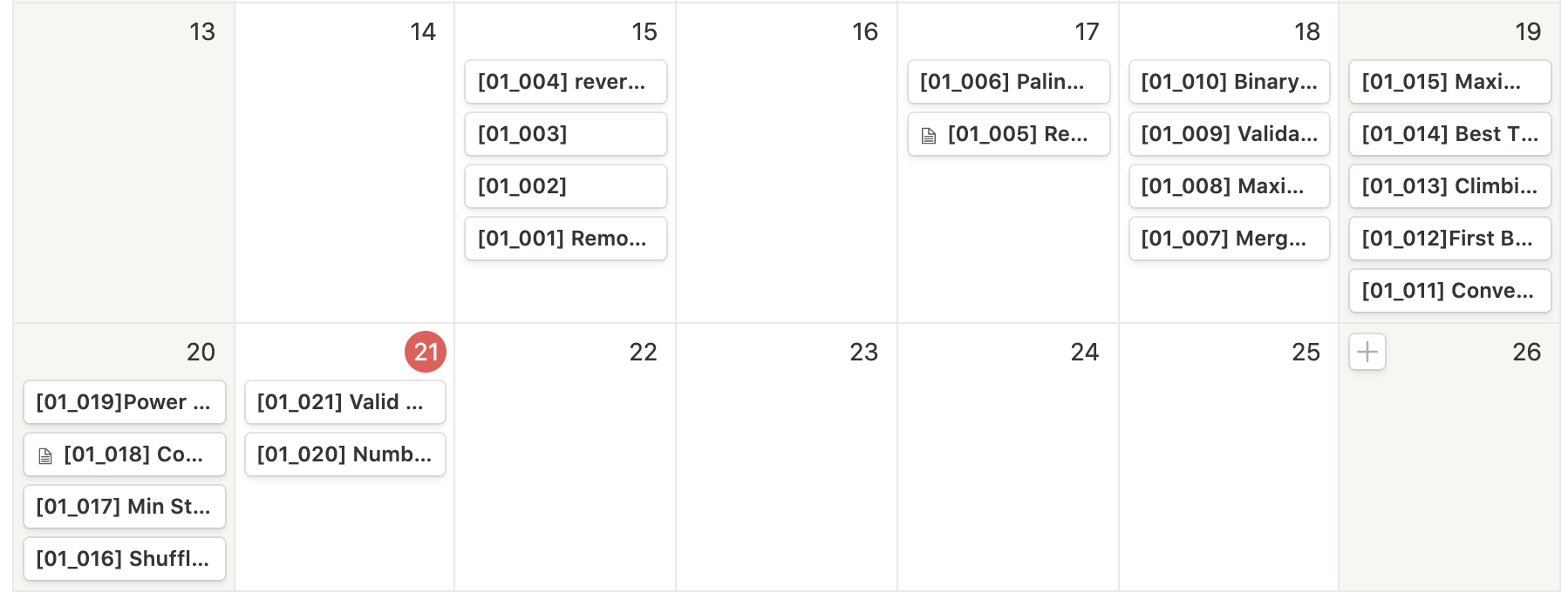 일주일에 거쳐 총 21문제를 풀었네요.