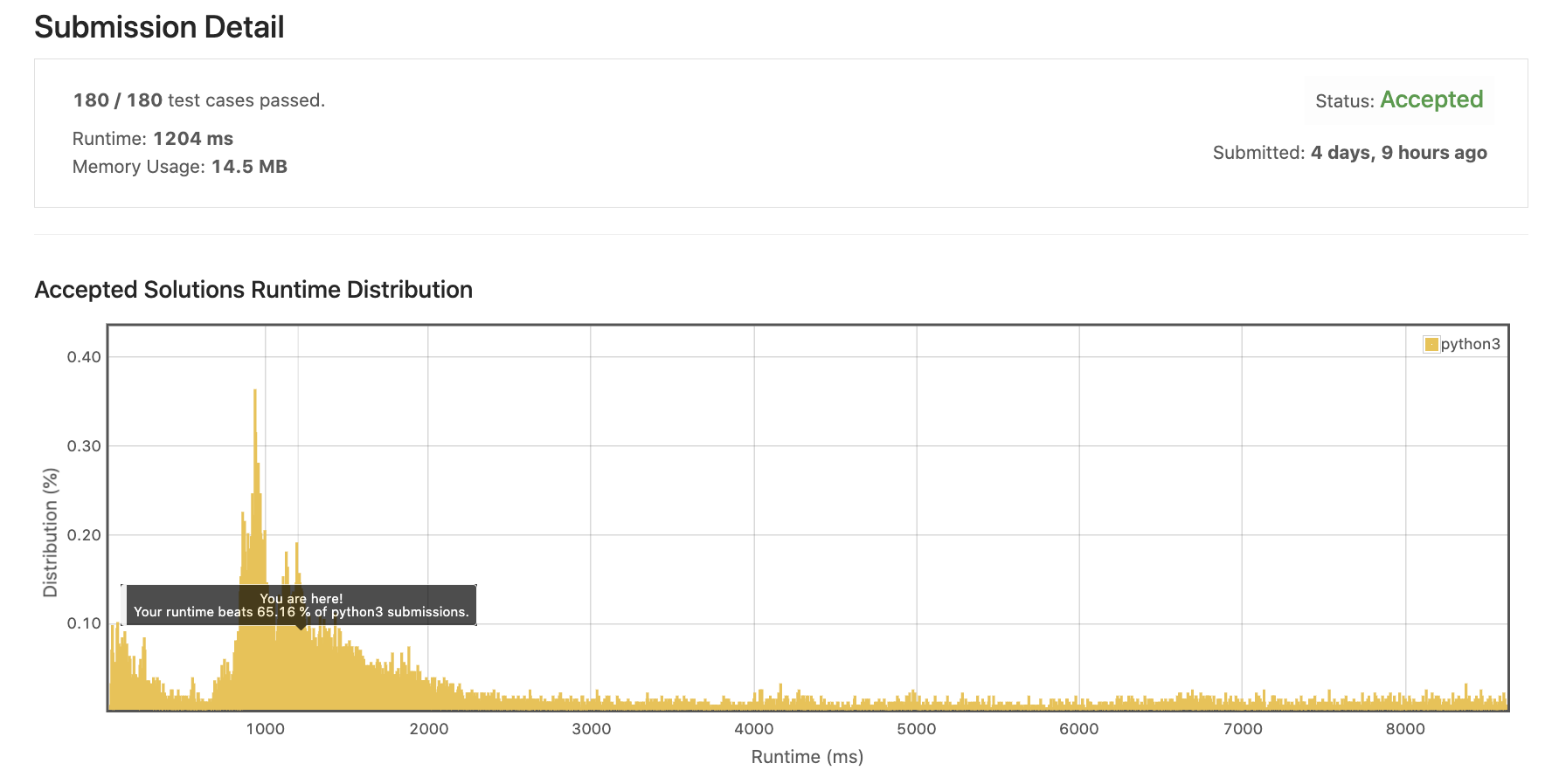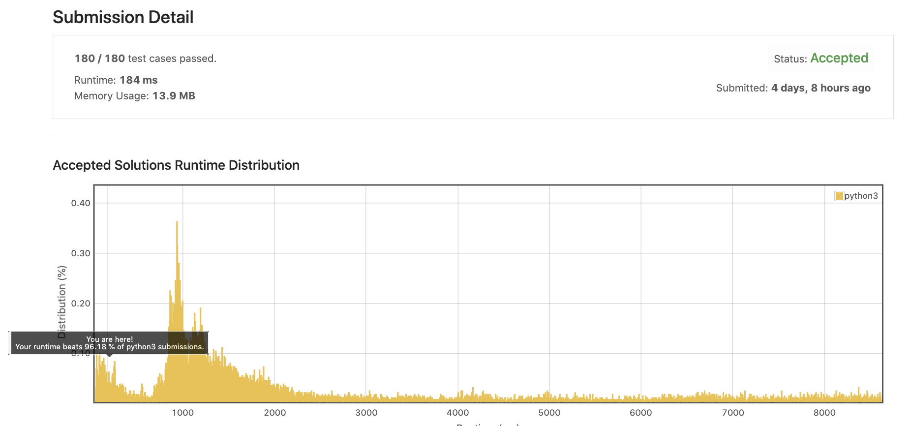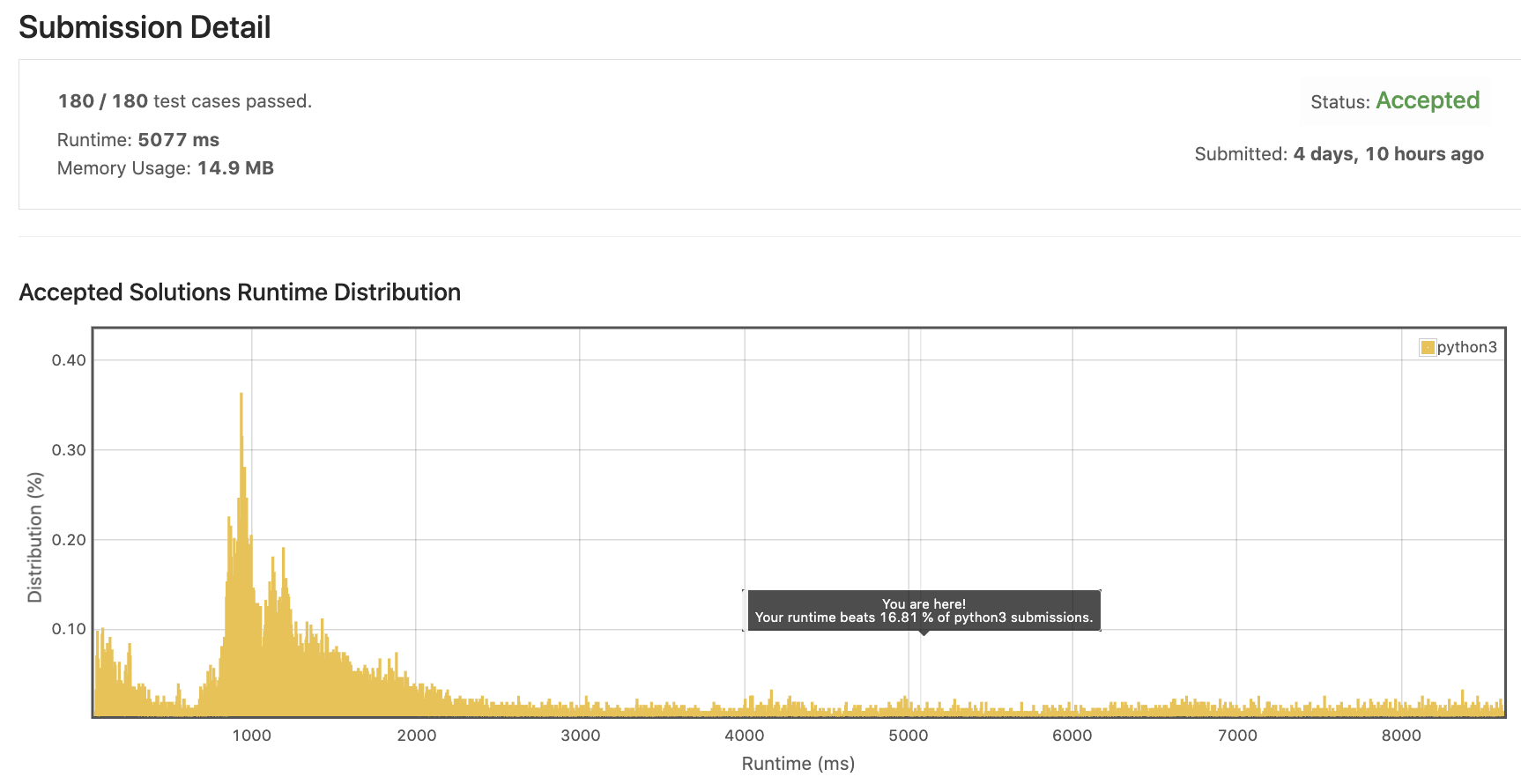Runtime์ด 5077ms์ผ๋ก 5๋ฐฐ๊ฐ๋ ์ค๋ ๊ฑธ๋ฆฌ๋ค์.