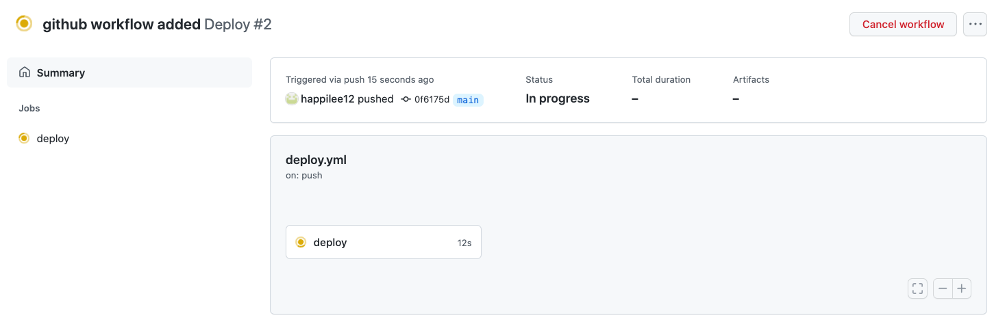 ์๋ก์ด ์ปค๋ฐ์ ํธ์ํ๋ฉด ์๋์ ๊ฐ์ด workflow๊ฐ ์คํ๋ฉ๋๋ค.