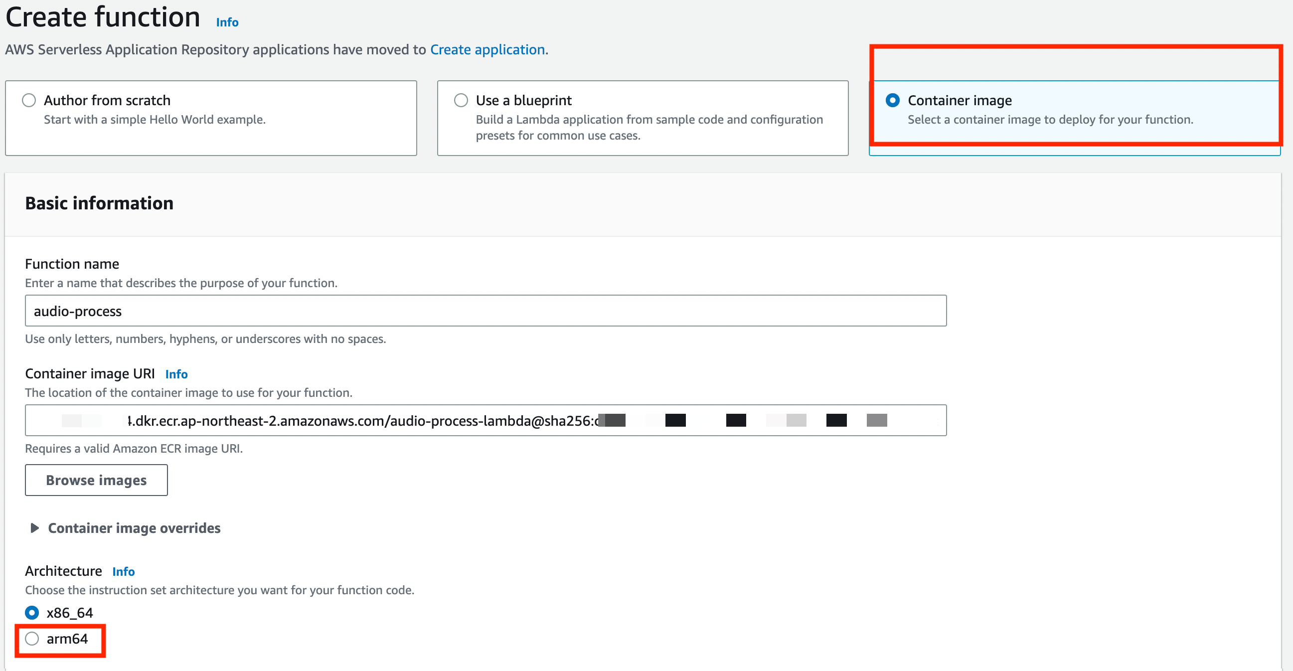 docker push [๊ณ์ id].dkr.ecr.ap-northeast-2.amazonaws.com/audio-process-lambda:latest