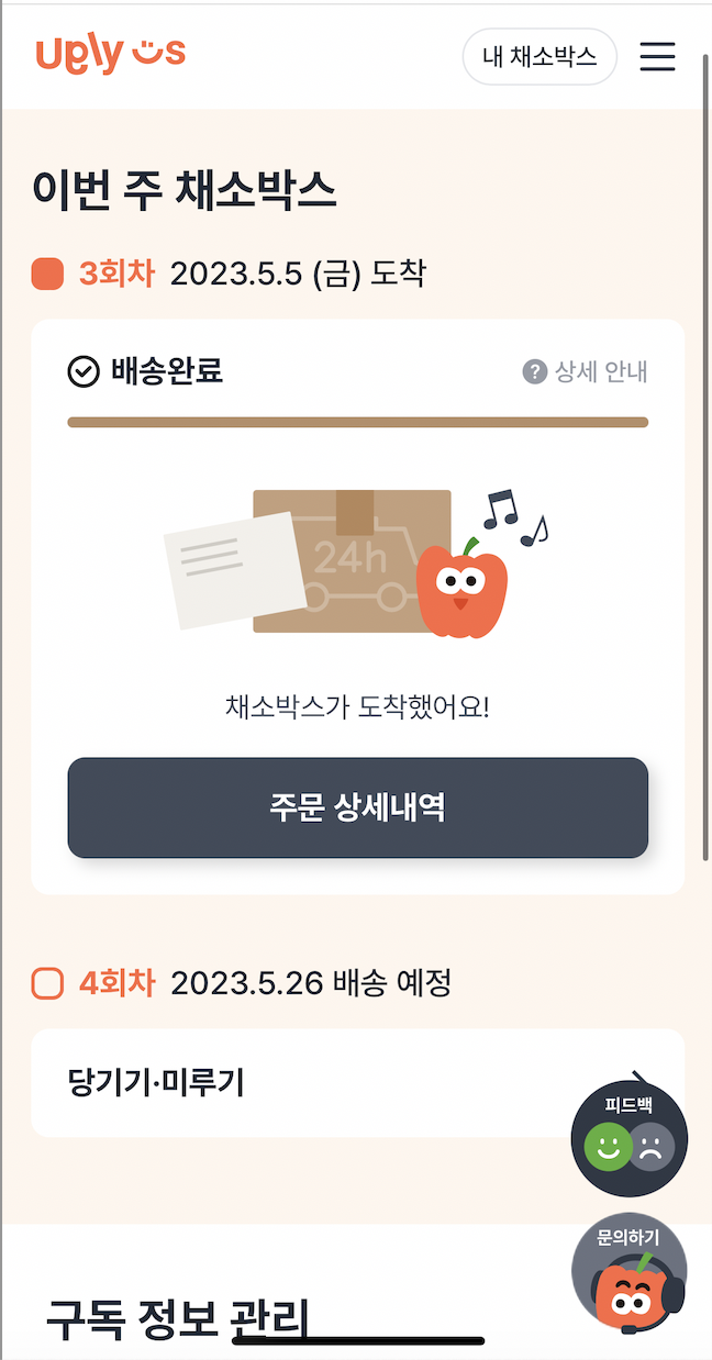 이번주의 기본 품목이 전달되고 거기서 일부 채소를 빼거나 추가할 수 있는 구조입니다.