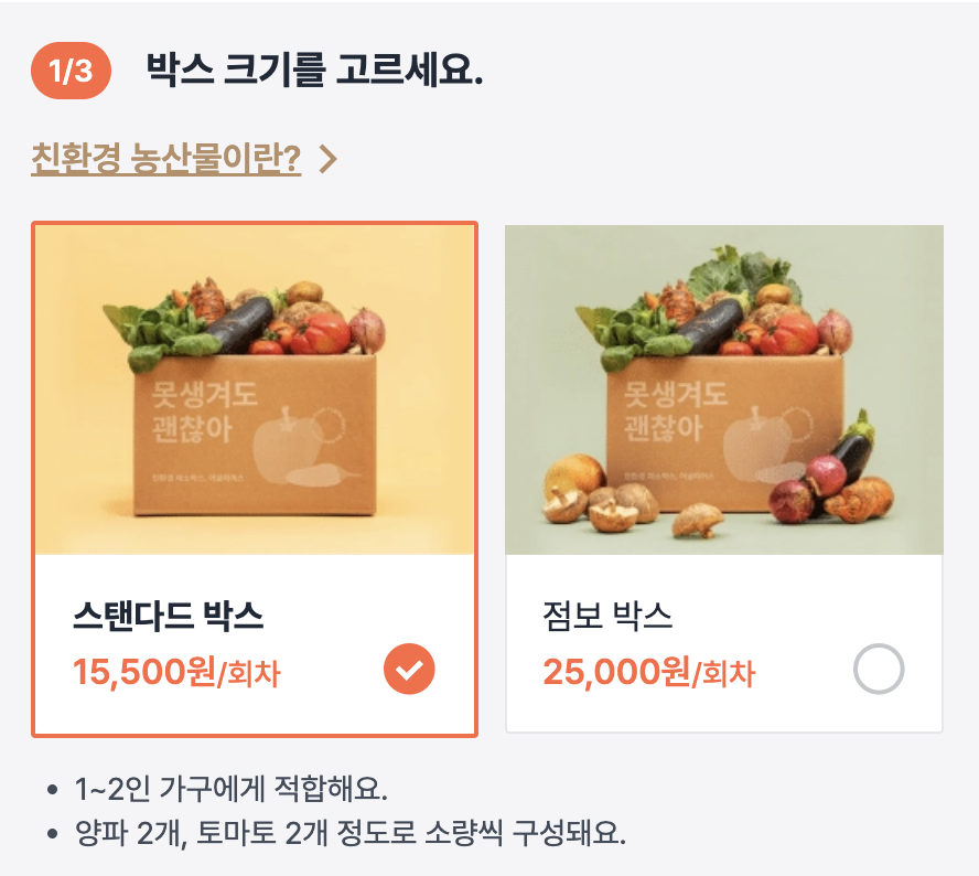 생긴게 조금 달라 마트에서 판매되기 어렵거나 판로를 찾지 못한 농산물을 정기배송해주는 서비스인데요,