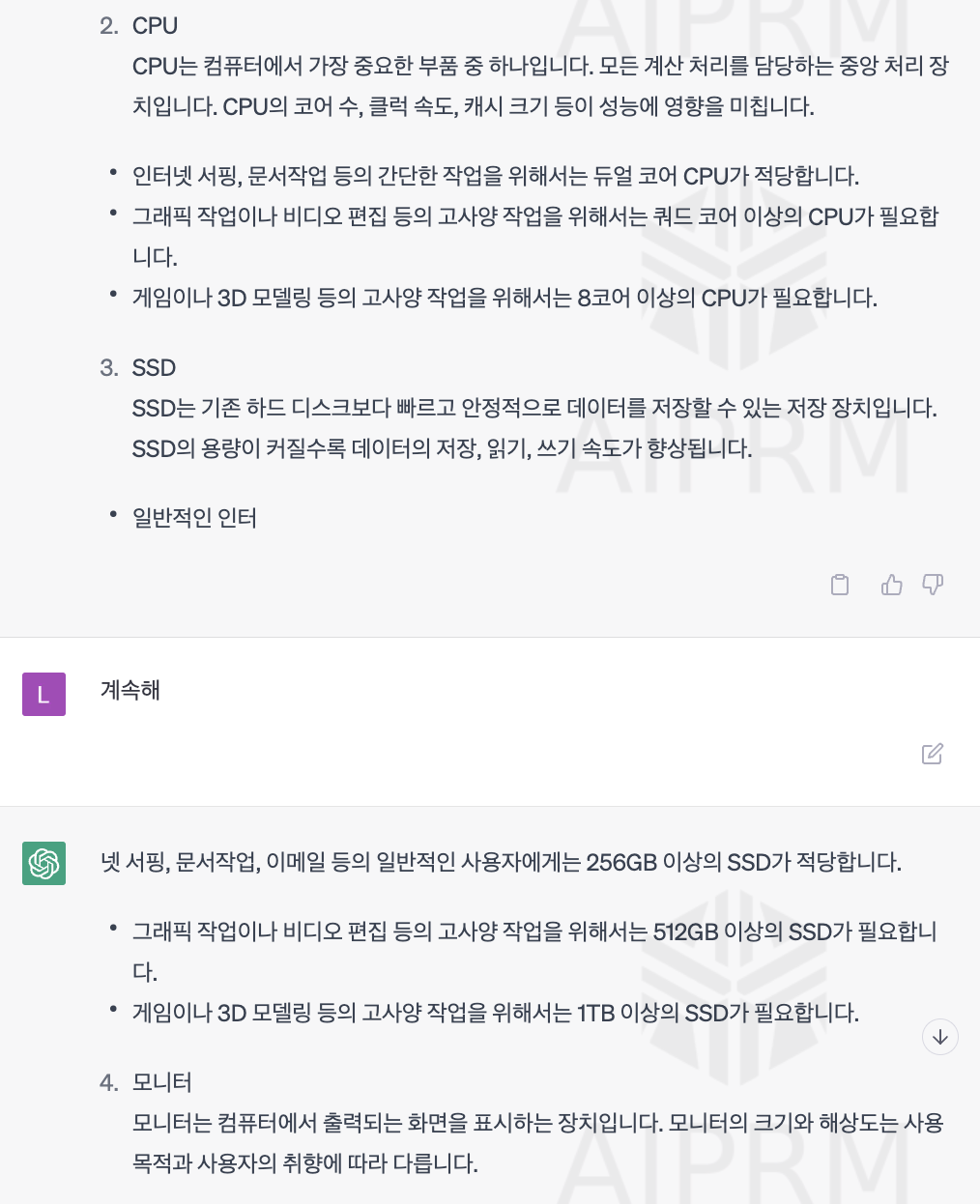 ChatGPT 답변이 중간에 끊길때 해결방법 - "계속해"
