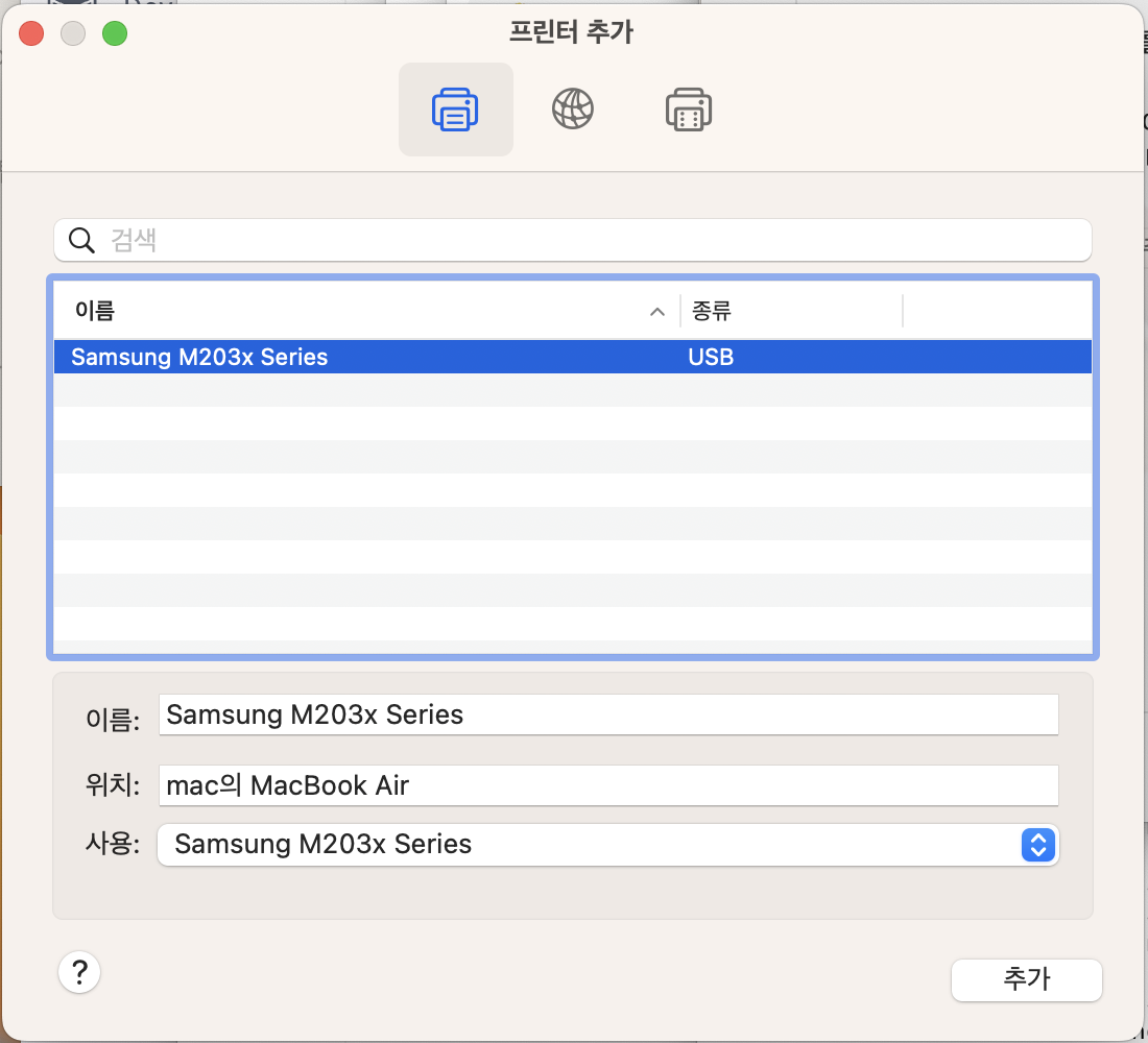 M1 MAC에서 삼성 프린터(SL-M2035) 연결, 드라이버 설치, BasicOptionPDE.bundle , 프린터가 오프라인입니다.