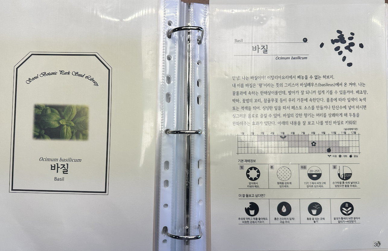 도서관 안에는 씨앗별로 어떻게 키워야 하는지에 대한 설명도 같이 있어요.