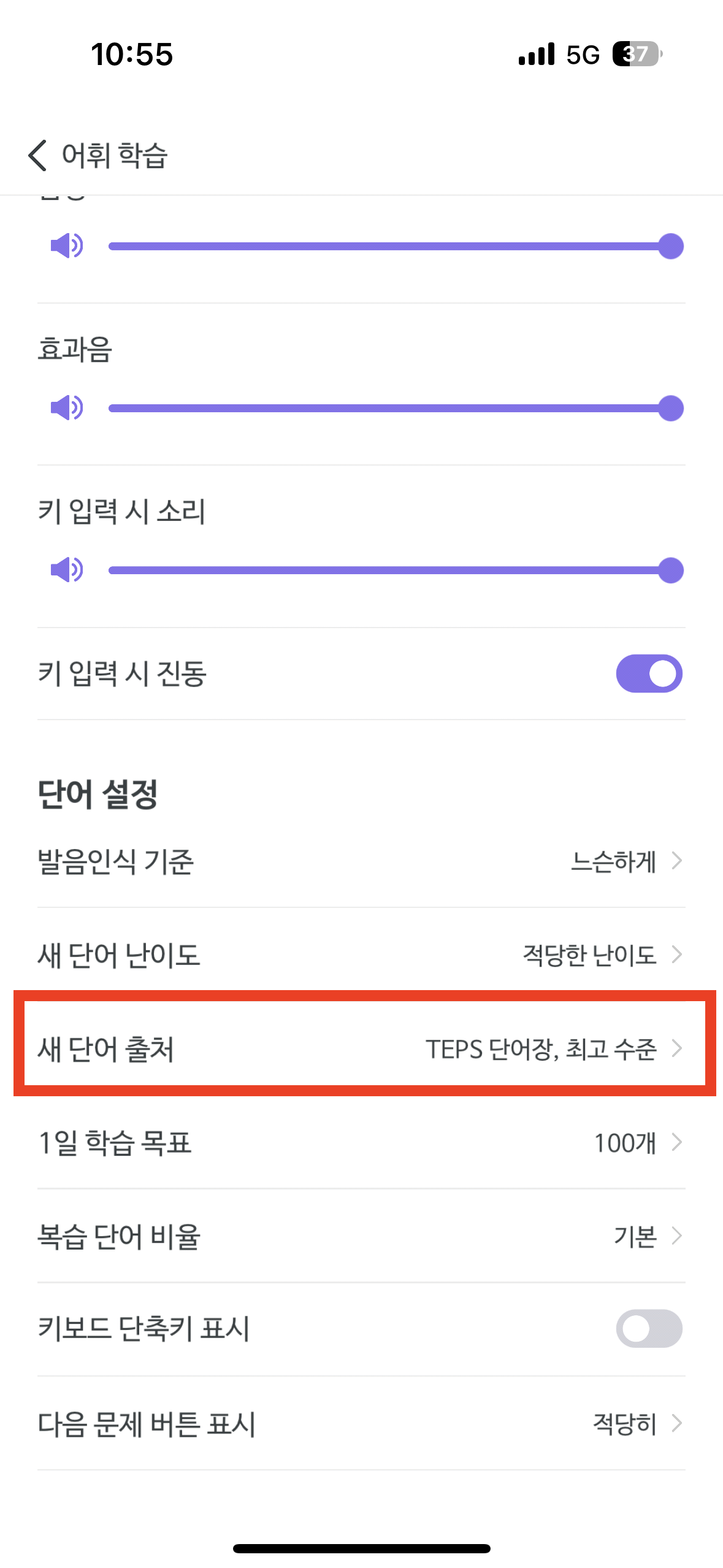 1. 설정 > 단어설정 > 새 단어 출처