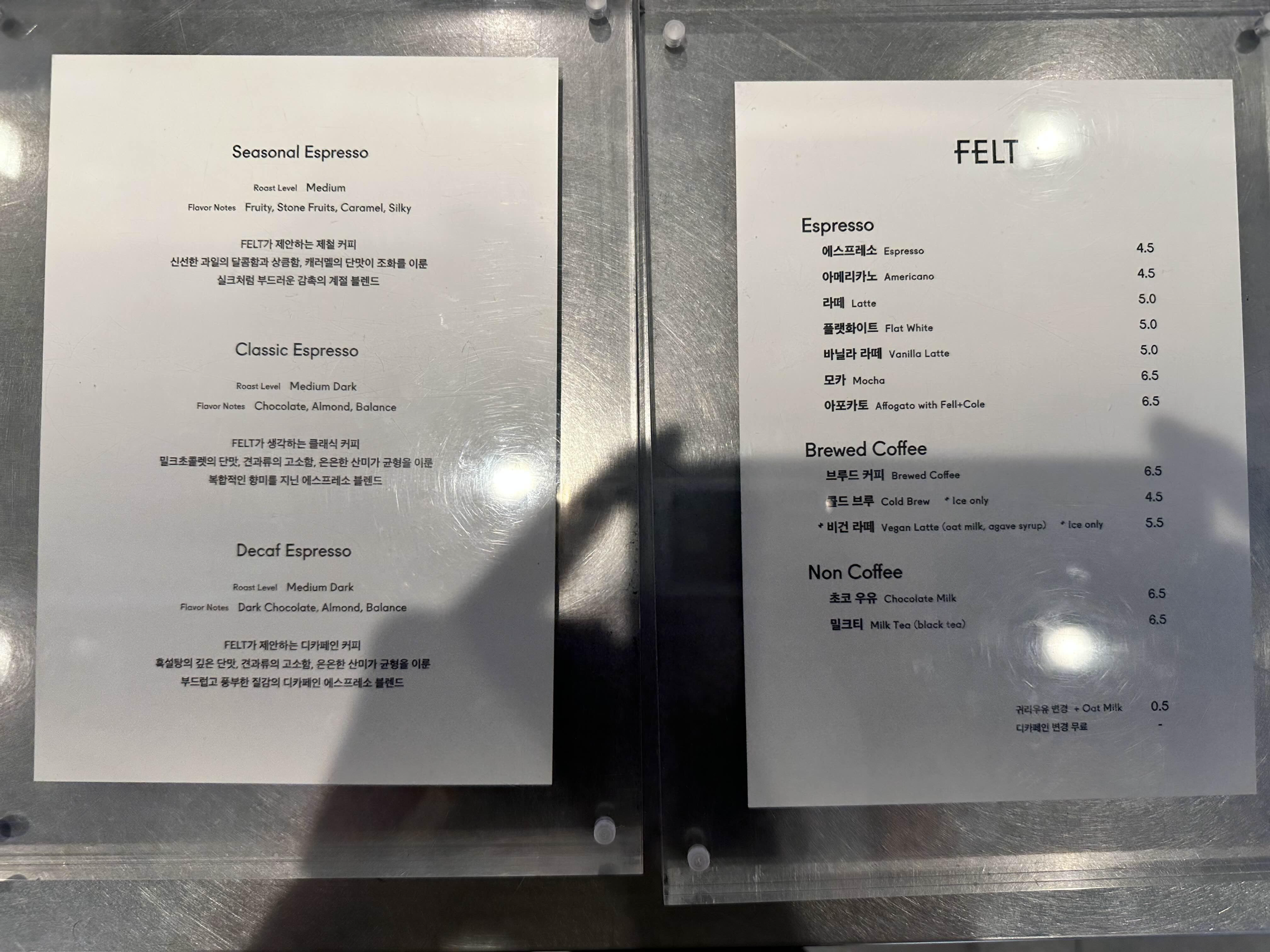 [광화문 카페] FELT 펠트커피 청계천점 리뷰. 메뉴, 내부, 드립백, 콜드브루, 케이크, 휘낭시에