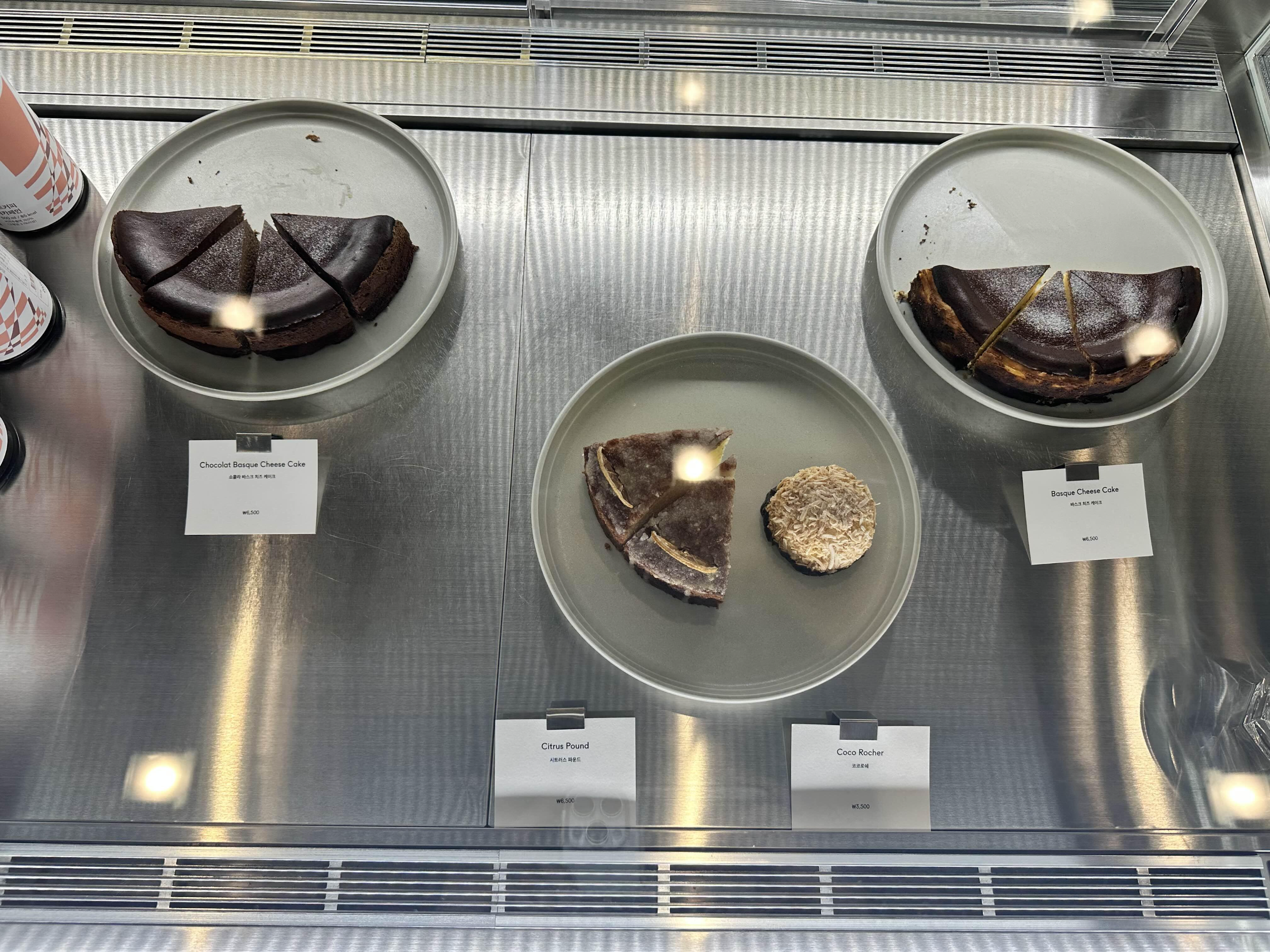 베이커리류는 휘낭시에와 케이크가 있네요.