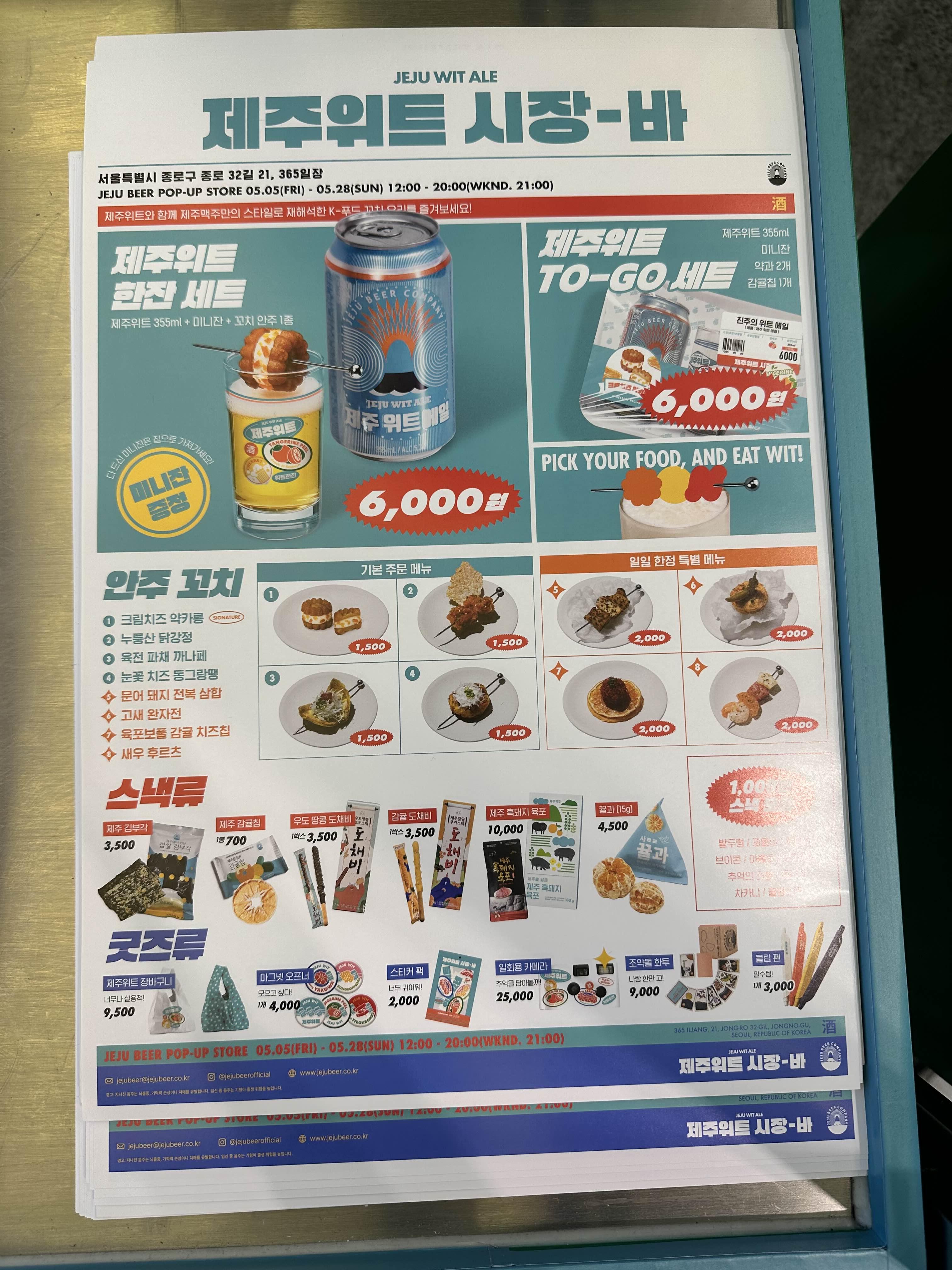 제주위트 시장바(제주위트 팝업) 후기, 길찾기, 안주 추천, 메뉴판, SNS 뽑기 이벤트