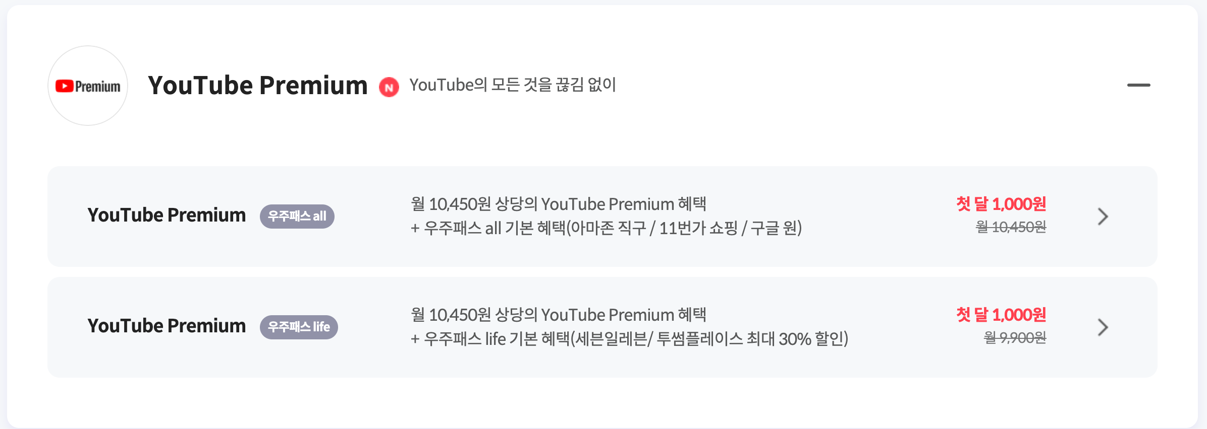 최근에는 추가혜택 없이 아마존과 11번가 쿠폰만 제공하는 우주패스 slim도 출시되었습니다.