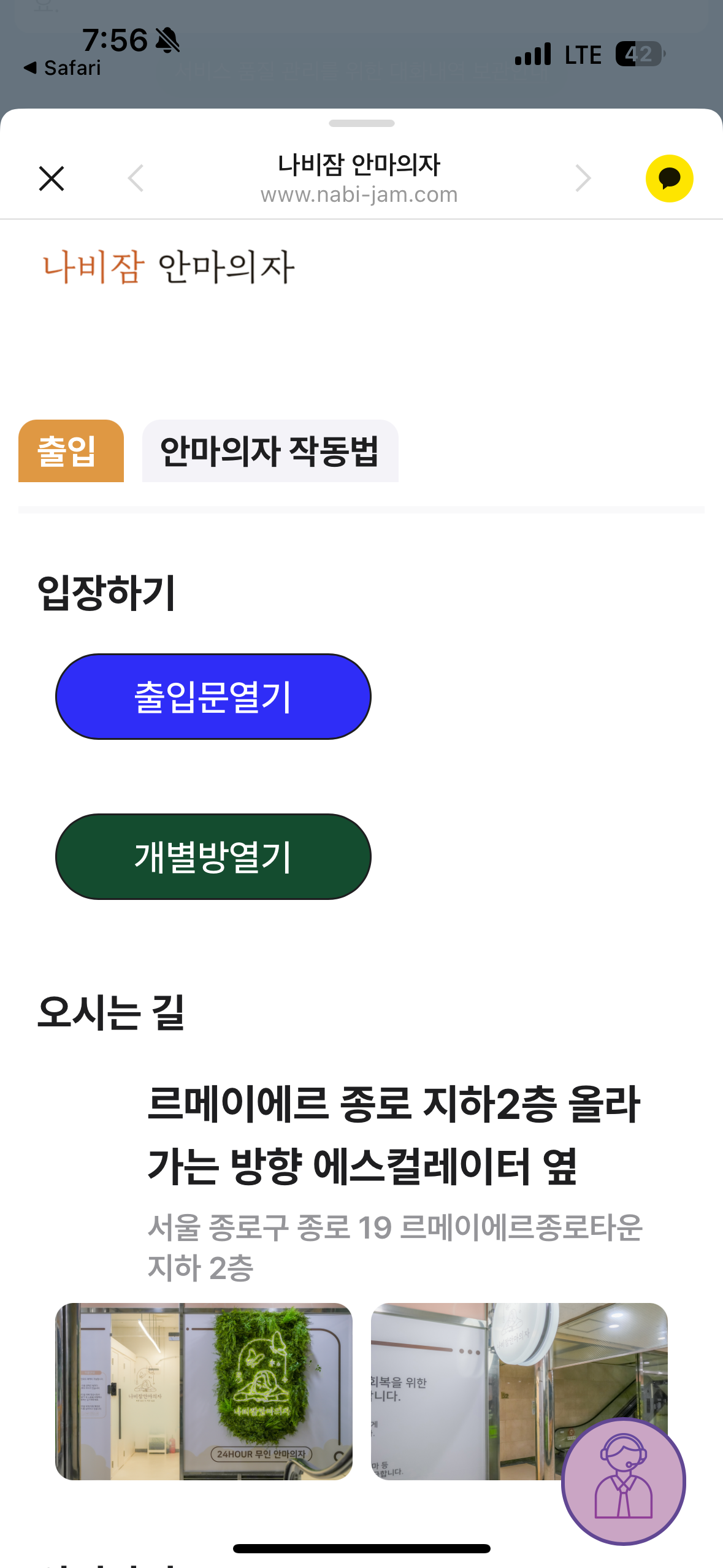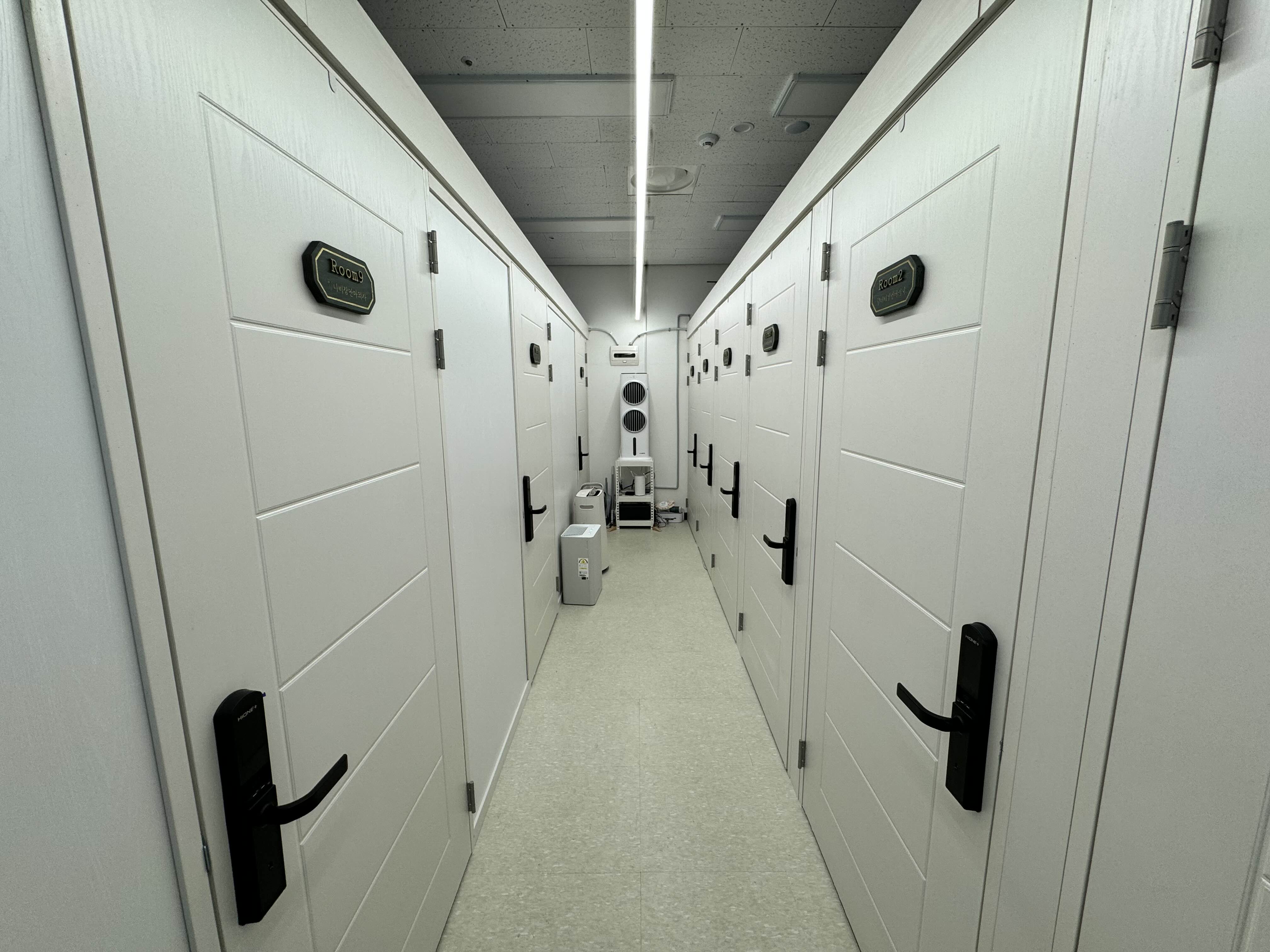 안마의자마다 개별 방으로 되어있고, 예약한 사람만 문을 열 수 있어요