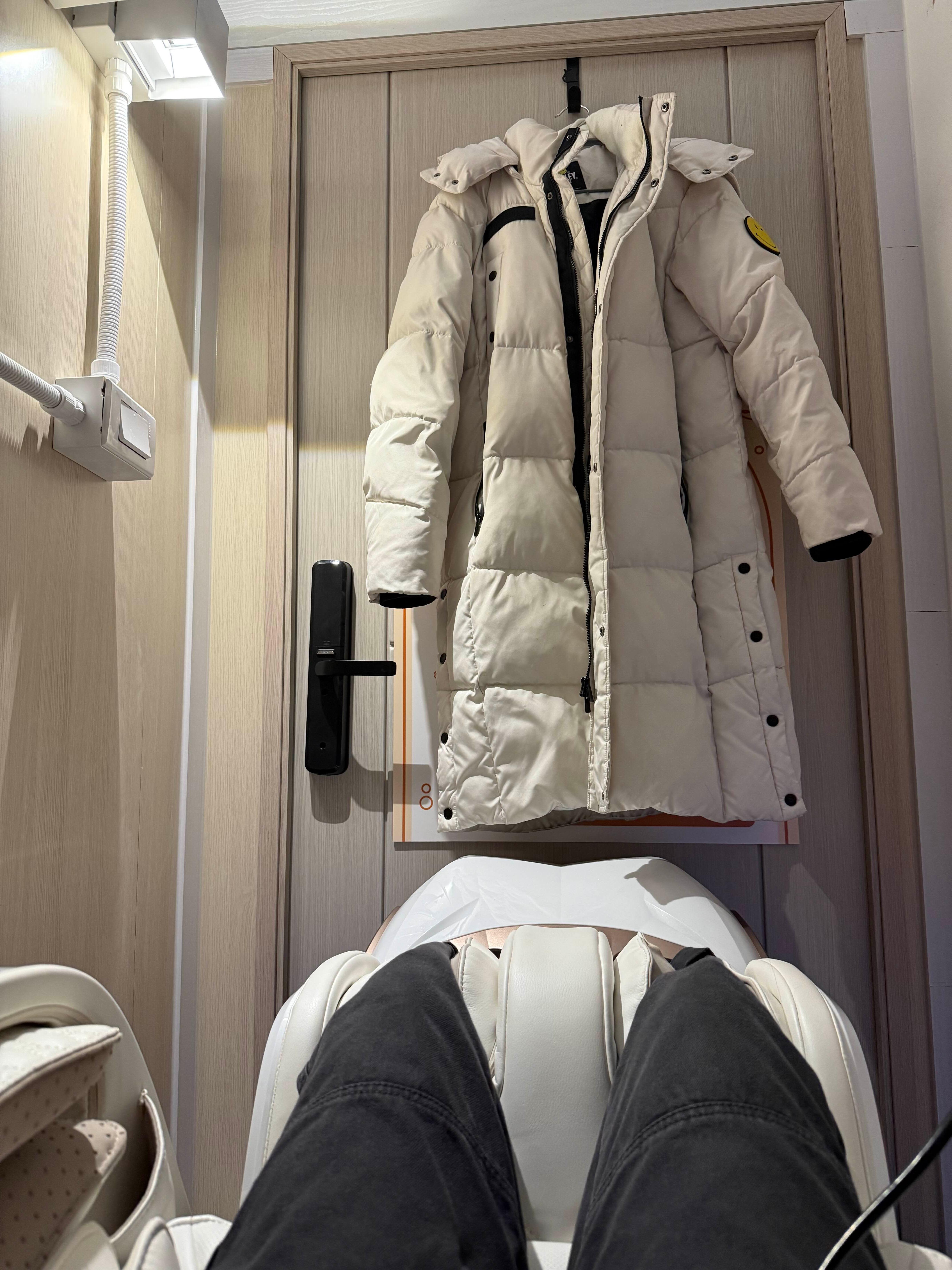 겉옷을 벗고 안마의자에 누워보았습니다..