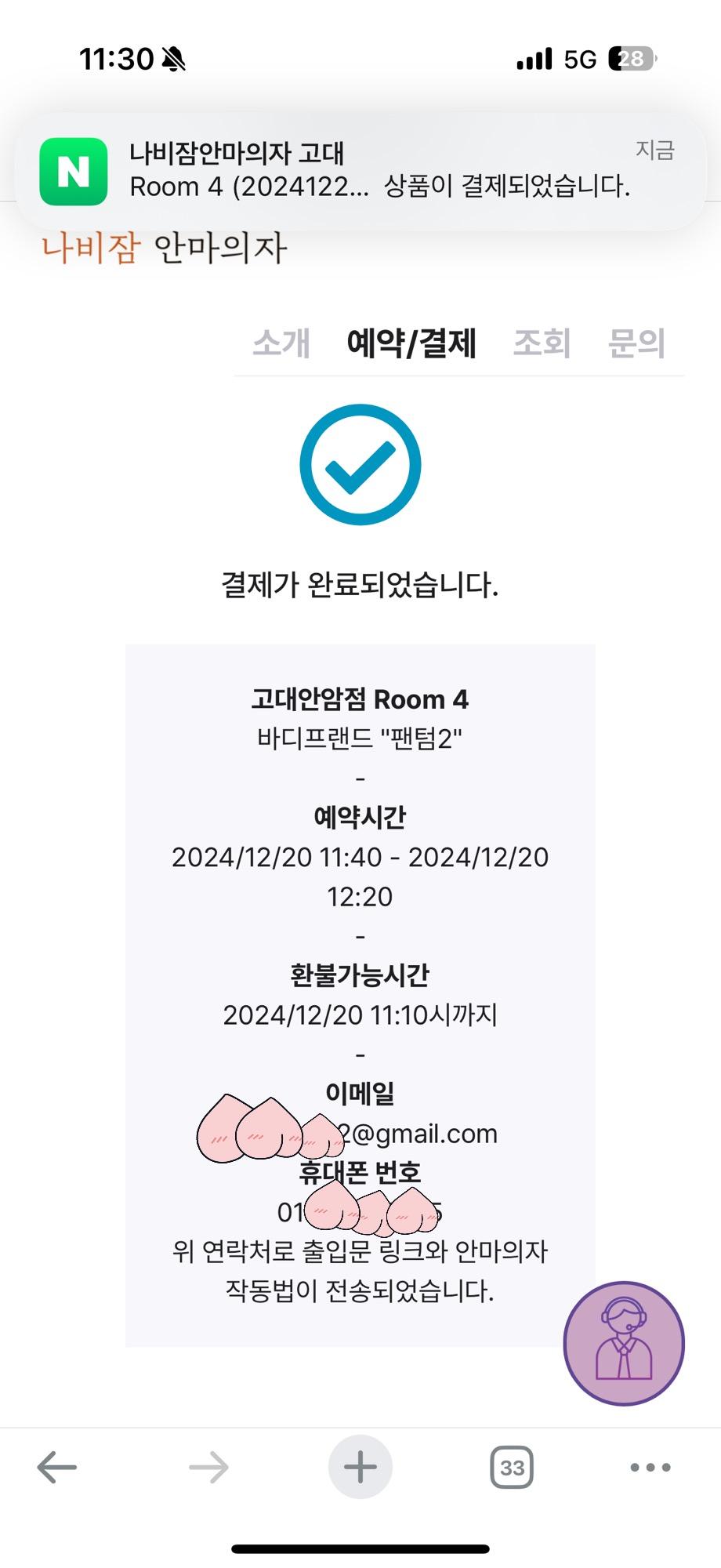 나비잠 안마의자 고대안암점 예약하기