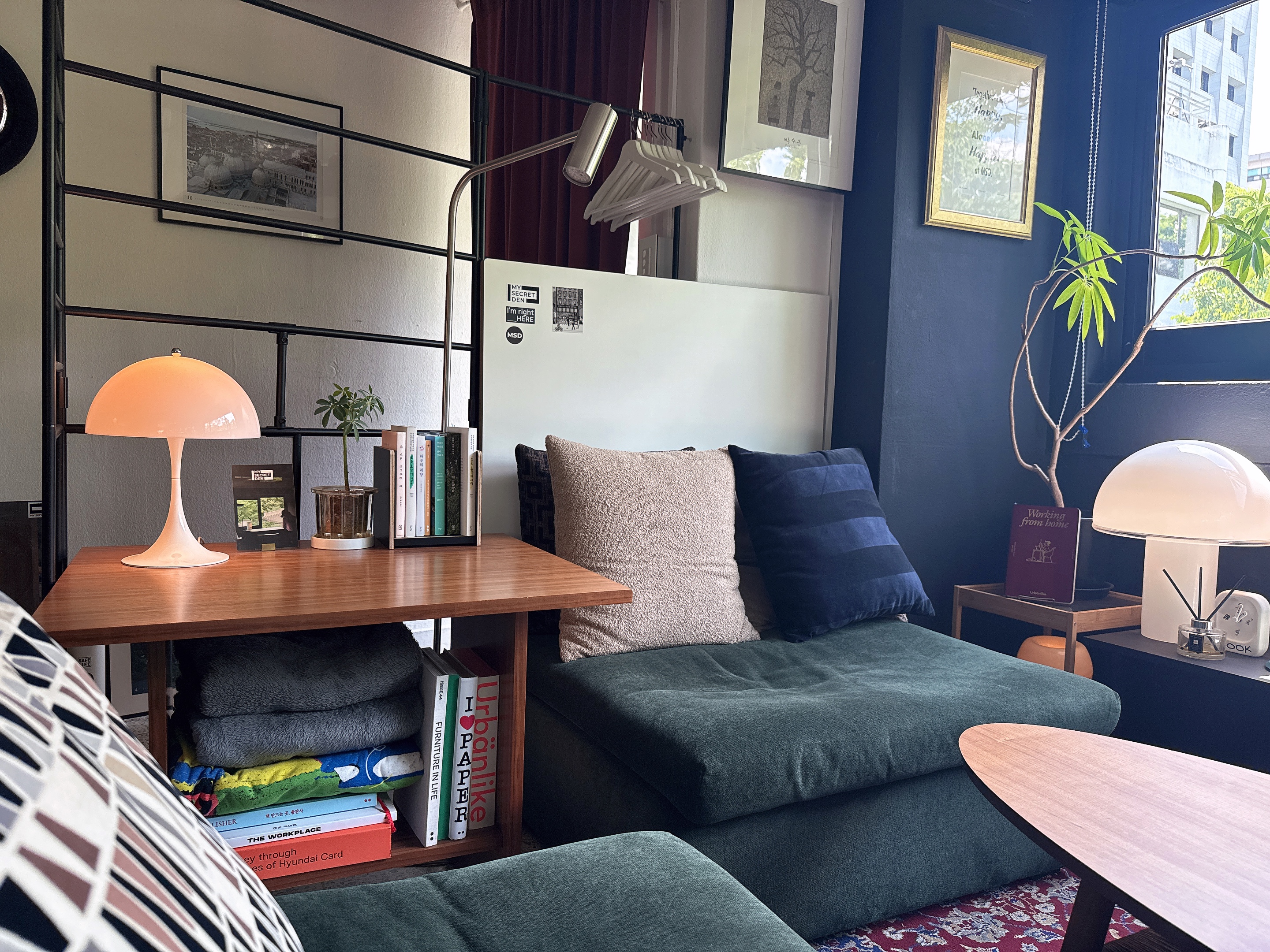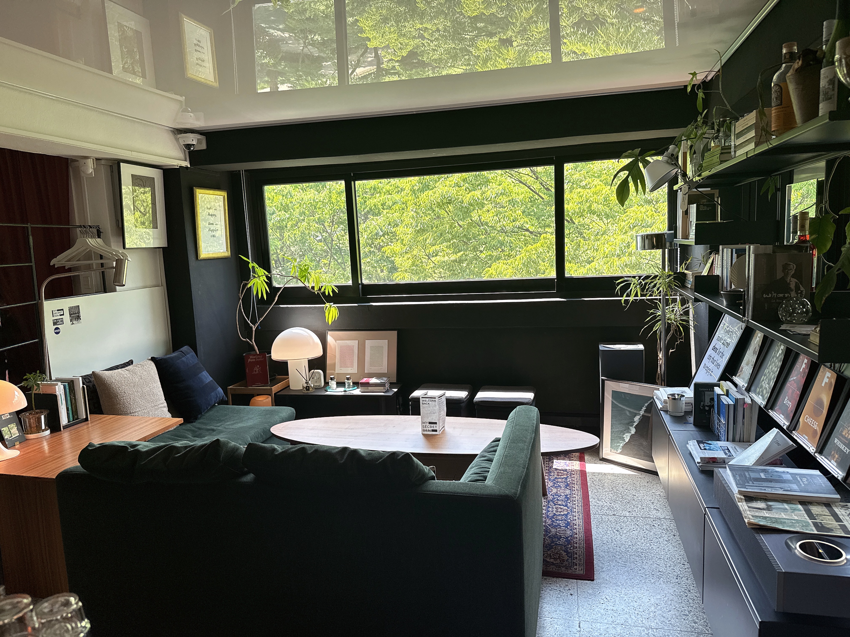 오후 3시에 예약을 하고 방문한 ‘마이시크릿덴’은 ‘낮의 사색’ 시간으로, 대화가 금지된 조용한 독서 공간으로 운영됩니다. 입장 전, 네이버 톡톡으로 전달받은 도어락 비밀번호를 입력하고 들어서면, 조용한 음악과 함께 아늑한 분위기가 맞이합니다. 이 시간에는 셀프 드립 커피를 즐길 수 있으며, 외부에서 가져온 음료도 허용됩니다. 단, 외부 음식은 반입이 불가하니 참고하시기 바랍니다.