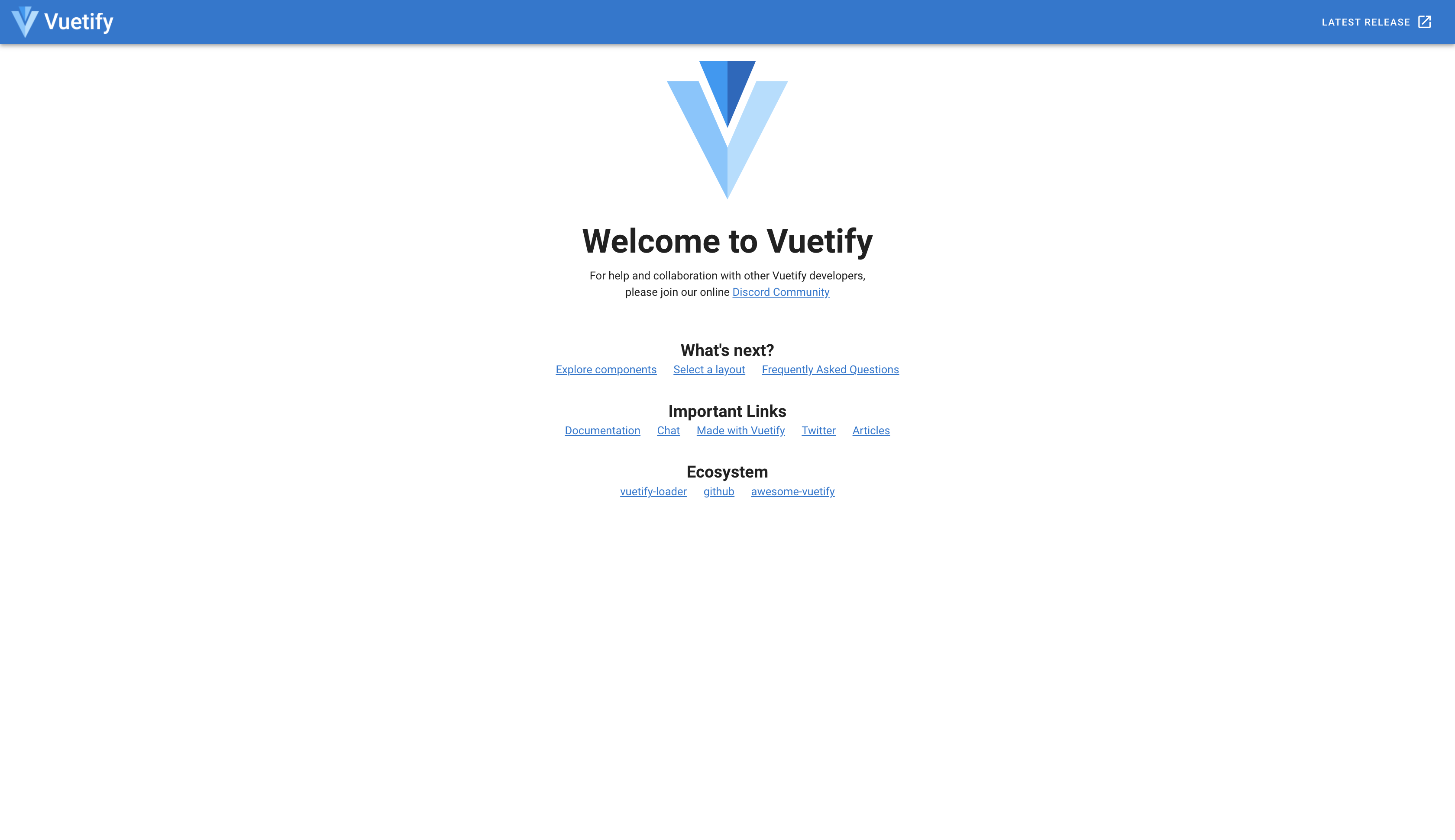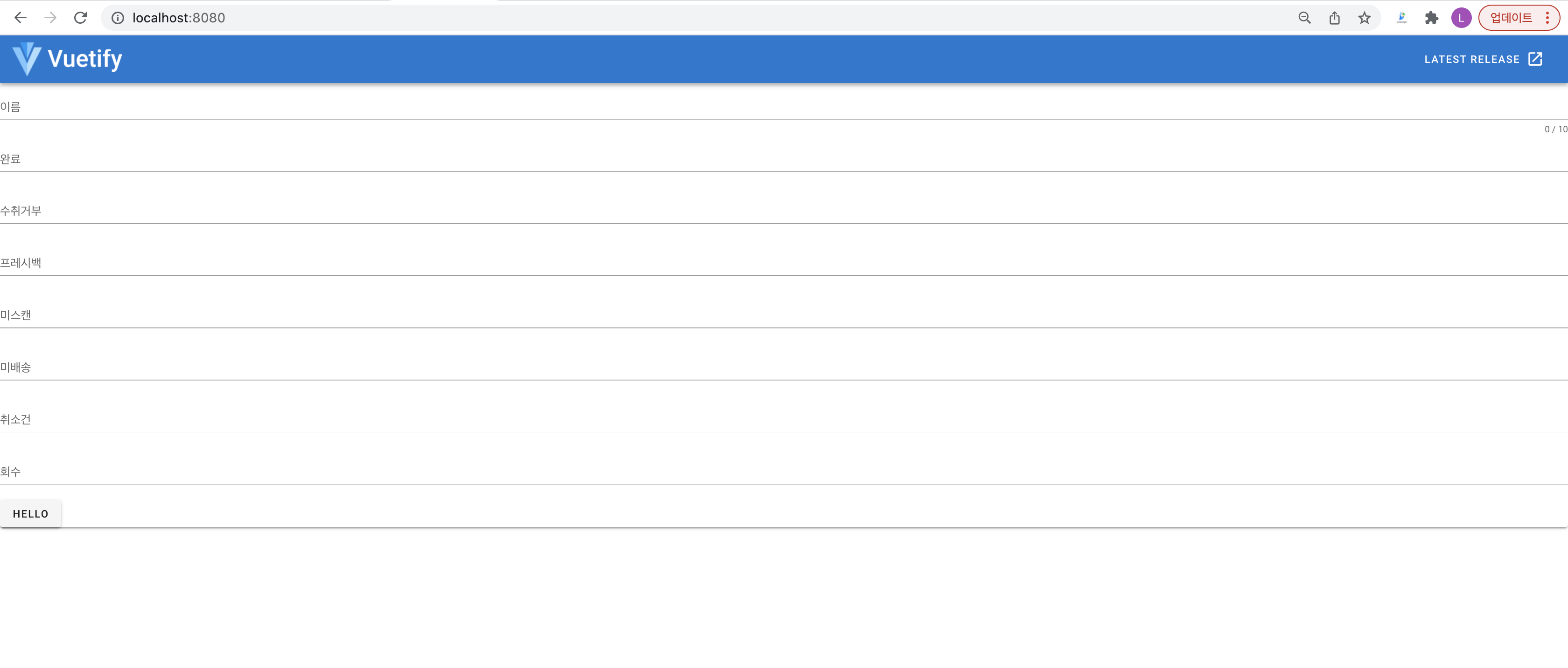 명령어 입력 후 localhost:8080에 접속해보면, vuetify 디자인이 적용된 화면을 확인할 수 있습니다.