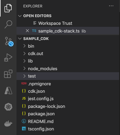 - cdk init ์ปค๋งจ๋๋ก cdkํ๋ก์ ํธ๊ฐ ์์ฑ